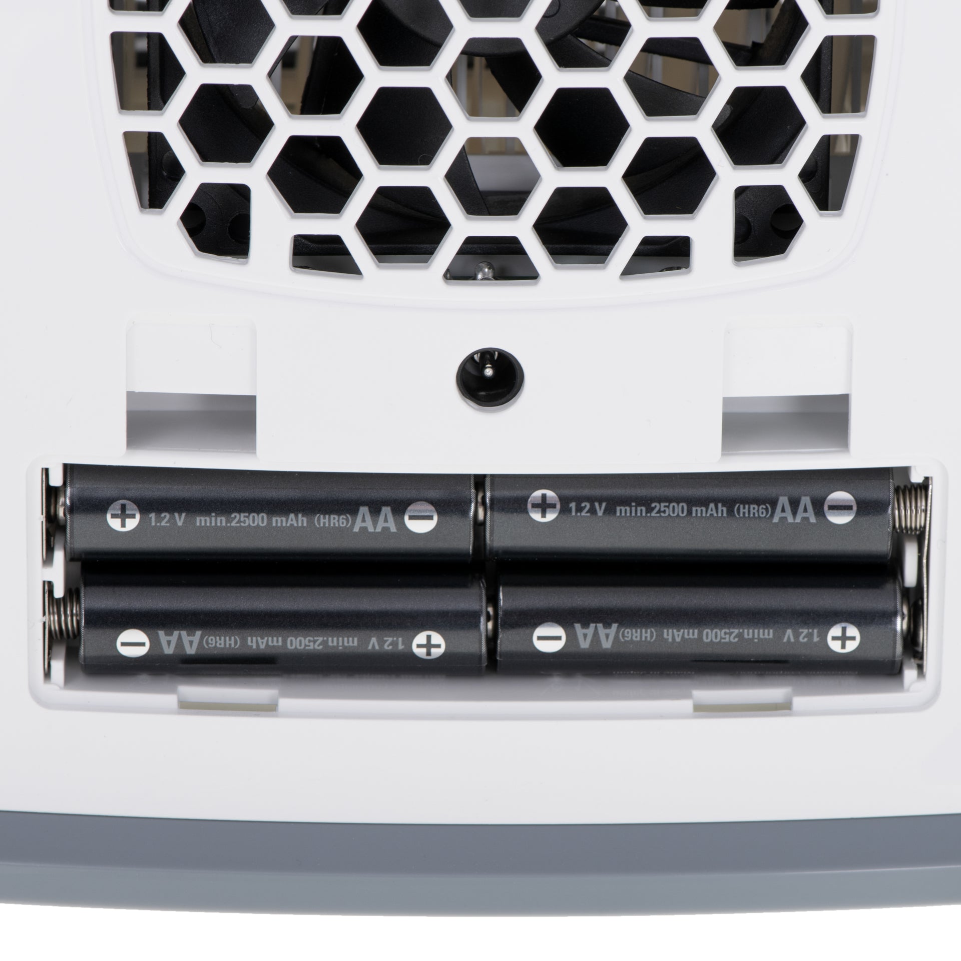 Un dispozitiv compact alimentat de la un port USB sau 4 x AA si va permite sa reduceti temperatura perceputa la locul de munca. Aparatul ofera 3 functii: raceste, curata si hidrateaza aerul. Trebuie doar sa adaugati apa in rezervor si sa alegeti una dintre cele doua viteze ale ventilatorului. Puteti seta directia de suflare sus/jos. Avantajul incontestabil al dispozitivului este functionarea silentioasa. Aparatul de aer conditionat este echipat cu un cablu USB de 1,2 m lungime. Rezervorul de apa are o capacitate de 500 ml.