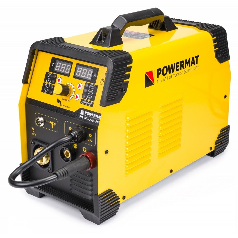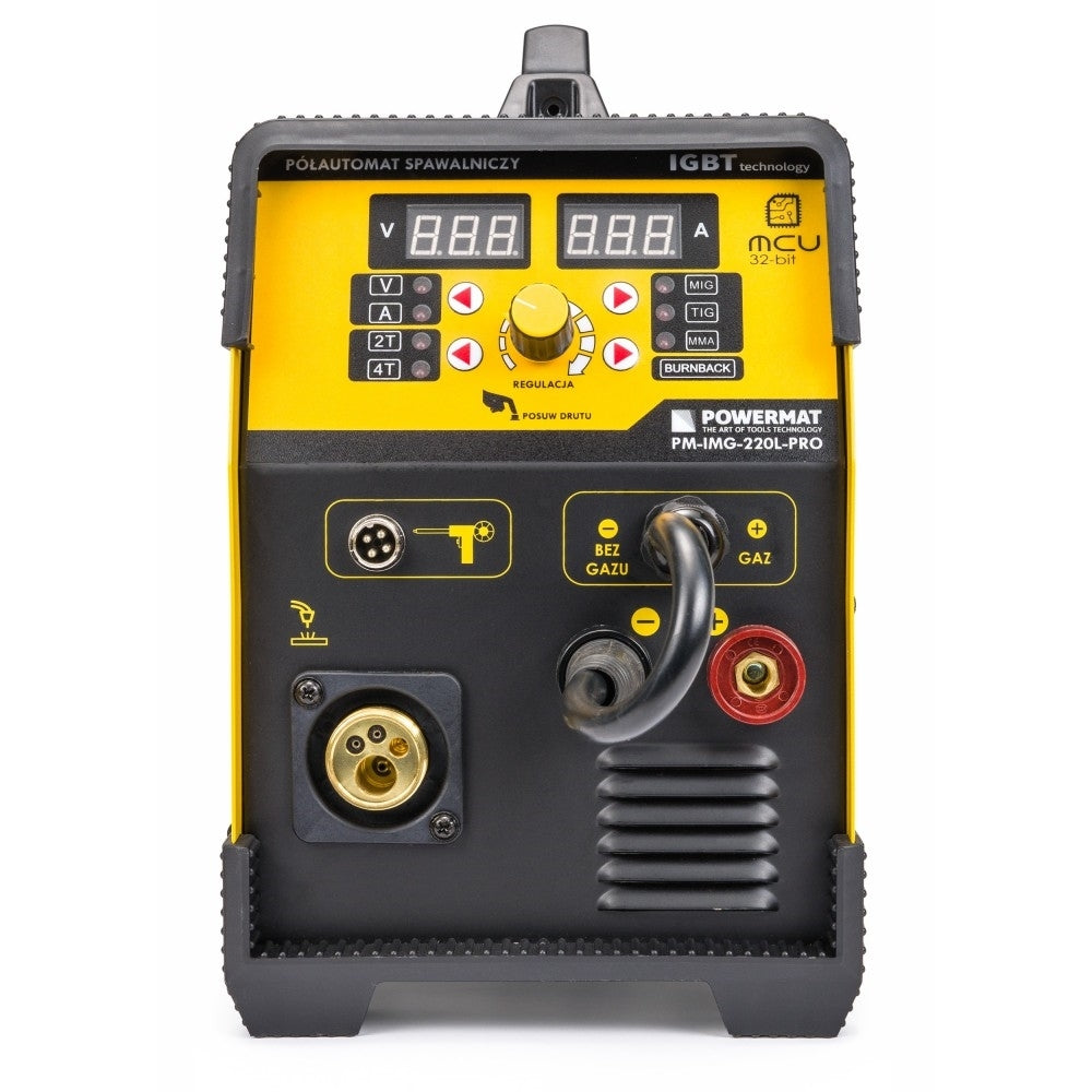 Mașina de sudare semi-automată Powermat PM-IMG-220L-PRO are o gamă foarte largă de utilizare. Permite sudarea eficientă a diferitelor tipuri de grupuri de materiale într-o gamă largă de grosimi de material. Folosite IGBT au un efect benefic asupra consumului de energie mai mic, mai mare imunitate la interferențe și căderile de tensiune, și un bun arc caracteristici. Panoul de control cu descrierea funcțiilor în limba poloneză este ușor de utilizat, iar operatorul are acces rapid la toate funcțiile. Acest lucru îmbunătățește ergonomia și eficiența muncii în uzină. Dispozitivul are funcții 2T și 4T, datorită cărora este posibilă sudarea pieselor scurte și lungi mai precis. Un avantaj suplimentar al mașinii este opțiunea BURNBACK, adică posibilitatea de a seta timpul de ardere după sudare în intervalul 1 - 10. Această funcție are un buton dedicat pe panoul de control. Electronica dispozitivului se bazează pe tranzistoare IGBT care îmbină avantajele a două tipuri de tranzistoare, ușurința de control a tranzistoarelor cu efect de câmp și tensiunea ridicată de defecțiune, precum și viteza de comutare a tranzistoarelor bipolare. Curentul de sudare este foarte stabil, ceea ce garantează o sudare perfectă. Datorită tehnologiei IGBT, dispozitivul este mai ușor și mai economic în consumul de energie. Datorită utilizării tehnologiei tranzistorului IGBT, eficiența dispozitivului este de până la 60%.