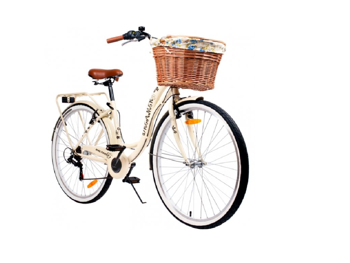 In plus, in interior exista o insertie de material textil (captuseala) cu motivul Paris. Cosul este fantastic pentru excursii cu bicicleta sau pentru cumparaturi.