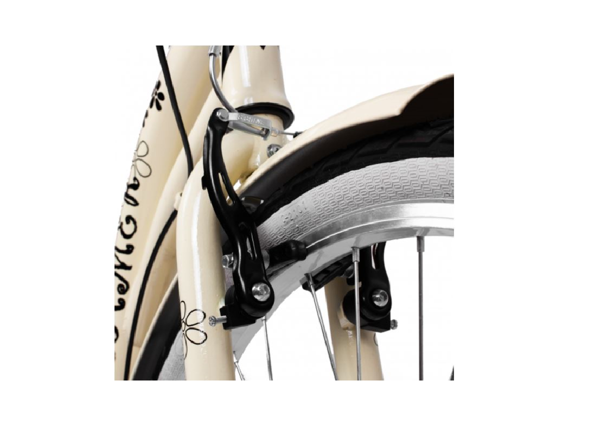 Siguranta biciclistului este asigurata de frane clasice v-brake, care sunt economice in utilizare si usor de intretinut. Frane V-Brake - ideale pentru conducerea in oras, iar fiabilitatea acestora asigura siguranta si incredere.