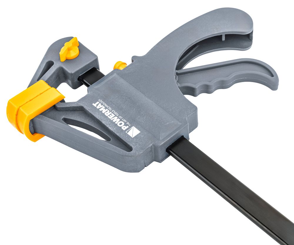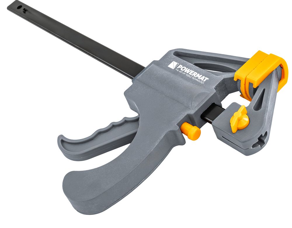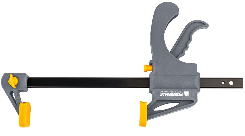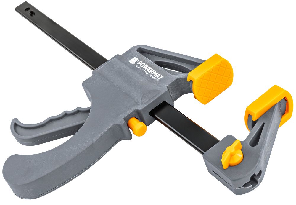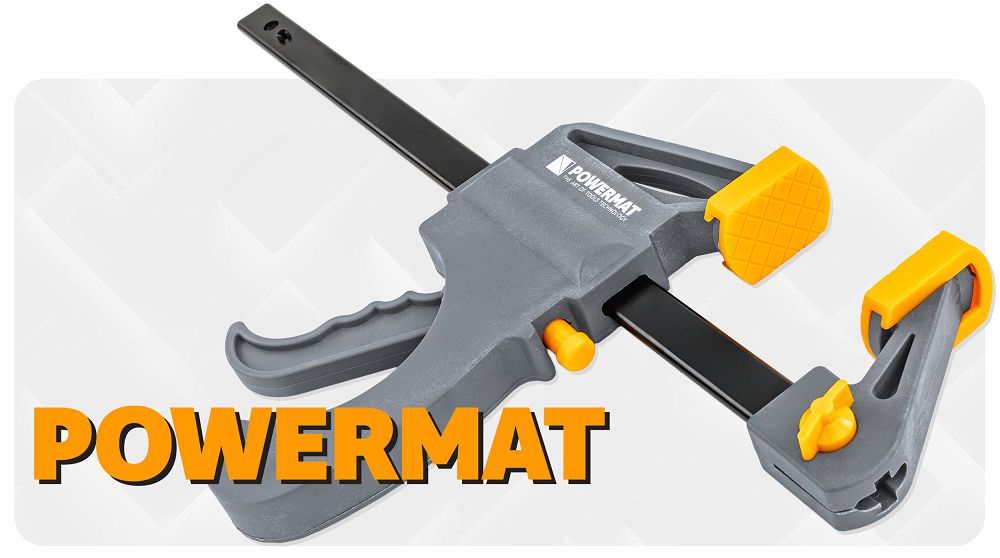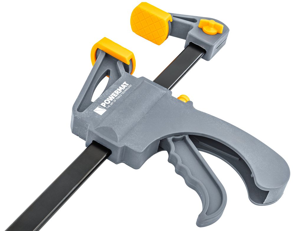 Clema de tamplar Powermat are un mecanism cu parghie care permite fixarea eficienta a elementelor folosind o singura mana.