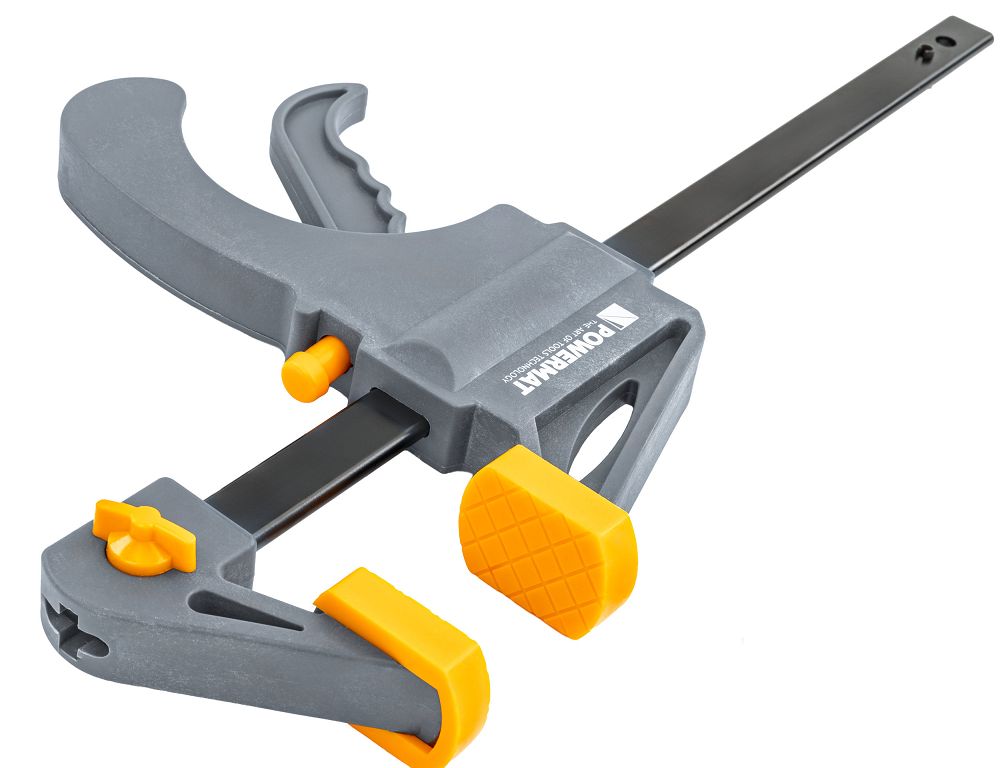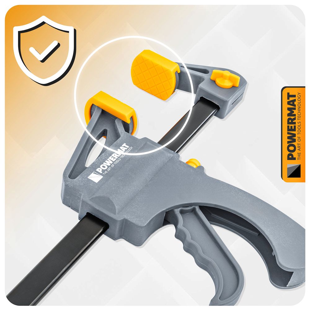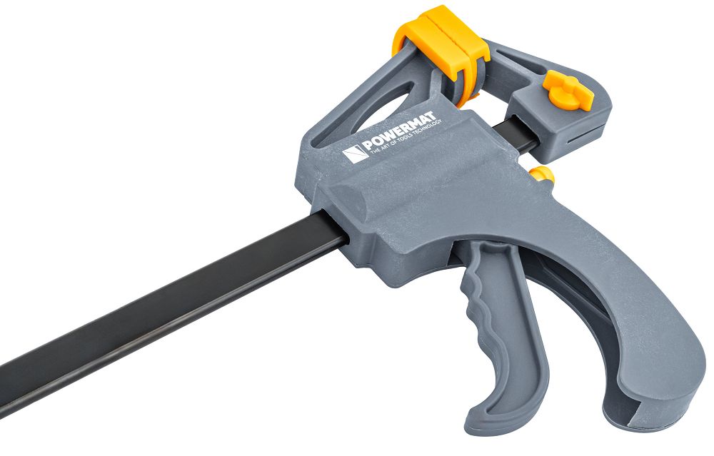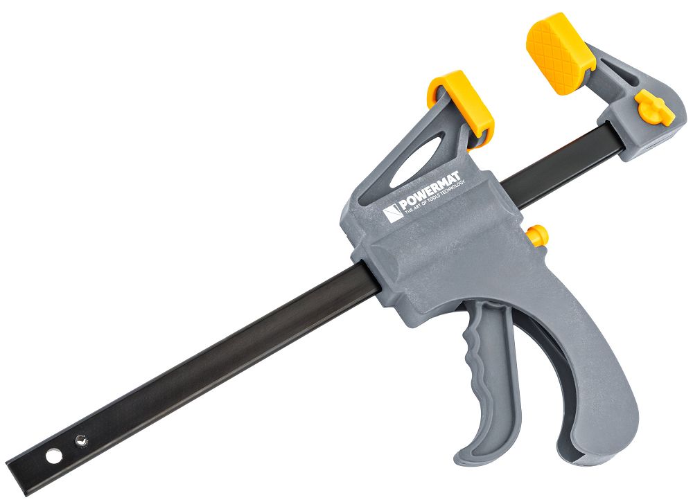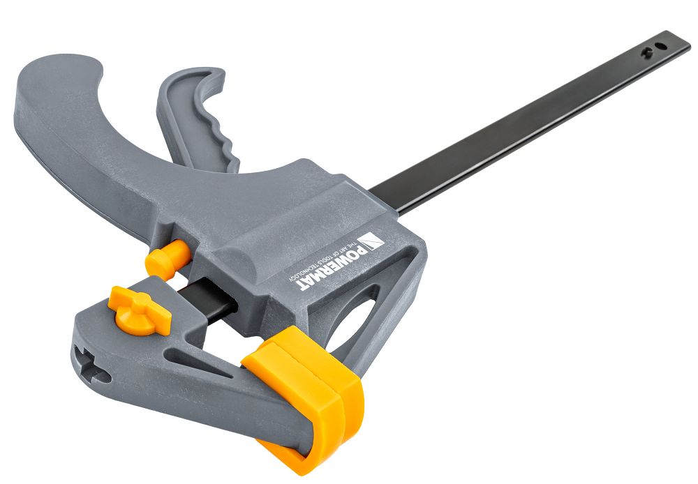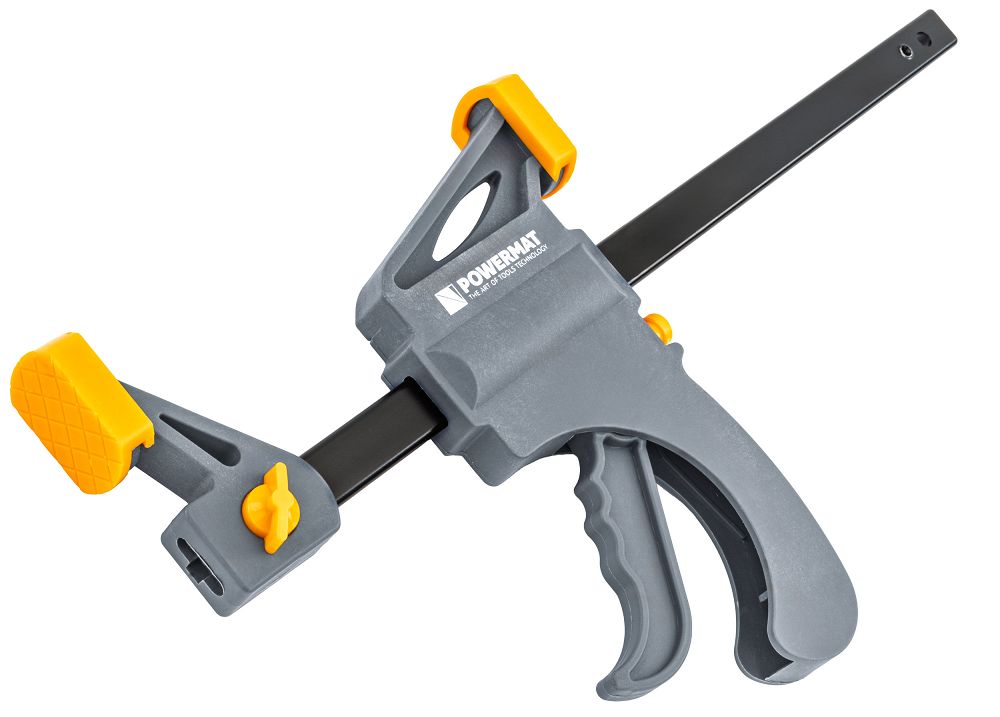 Clema de tamplar Powermat are un mecanism cu parghie care permite fixarea eficienta a elementelor folosind o singura mana.