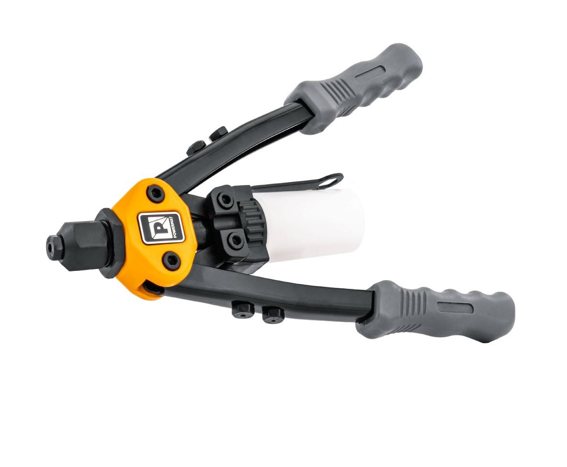 Masina de nituit Powermat foloseste o clema mecanica cu falci pentru a prinde in siguranta tija nitului si a o elibera controlat atunci cand se obtine presiunea corecta.