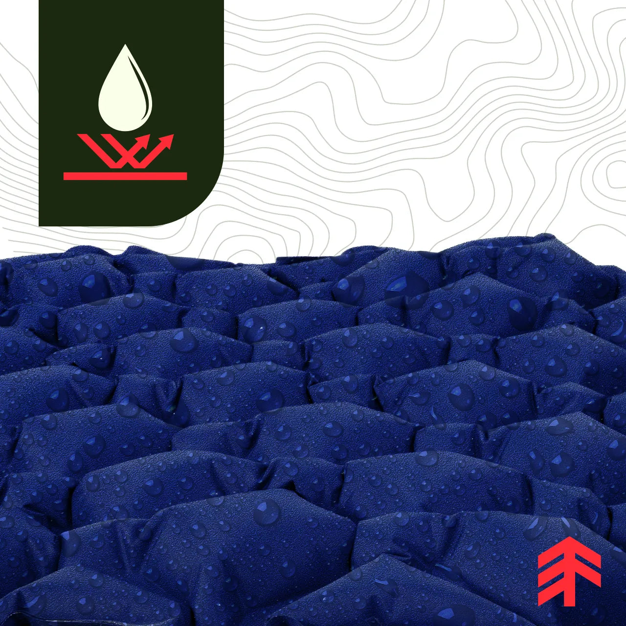 Proprietatile impermeabile ale saltelei autogonflabile ofera o protectie eficienta impotriva umezelii, ceea ce o face o alegere ideala pentru camping, plimbari cu cortul si expeditii in conditii dificile. Datorita materialului rezistent la apa, salteaua nu absoarbe umezeala de pe sol, ramanand uscata si confortabila chiar si pe iarba uda sau pe teren umed.