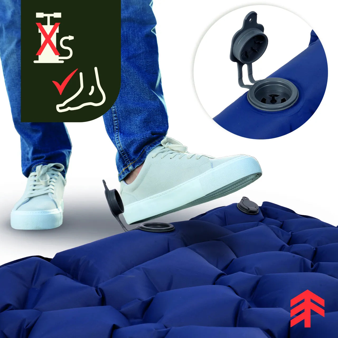 Aceasta saltea de calatorie usoara si confortabila are o pompa de picior incorporata care va permite sa o umflati rapid si fara efort - doar cateva apasari ale piciorului.