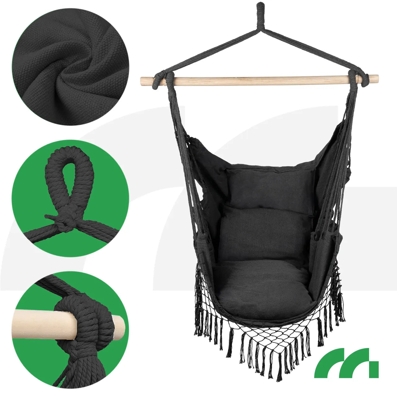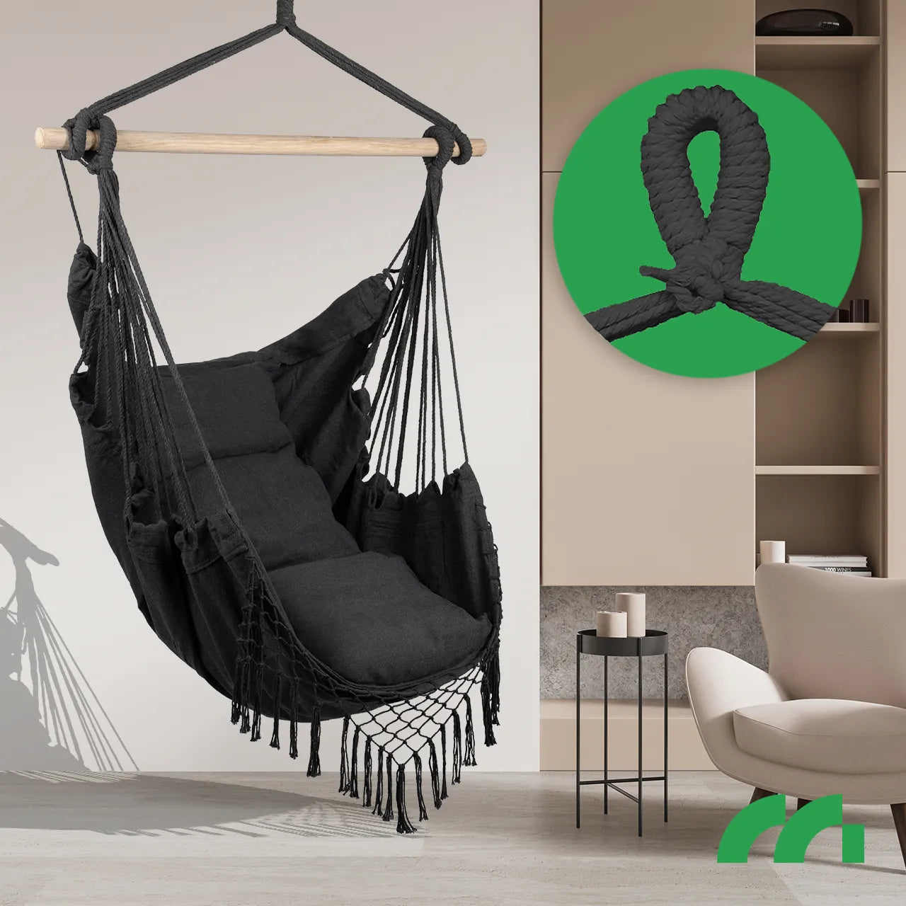 Datorita cadrului din lemn, hamacul nu este doar placut din punct de vedere estetic, ci si mai functional. Acesta ofera stabilitate, prevenind in acelasi timp incurcarea franghiilor, ceea ce creste suplimentar durabilitatea acestui scaun unic.