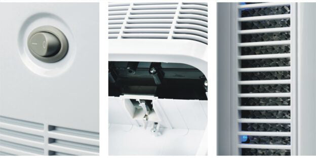 - dimensiuni compacte si un recipient incorporat, usor demontabil pentru apa colectata - poate fi folosit si in dulapuri mici, dulapuri, dulapuri, etc.