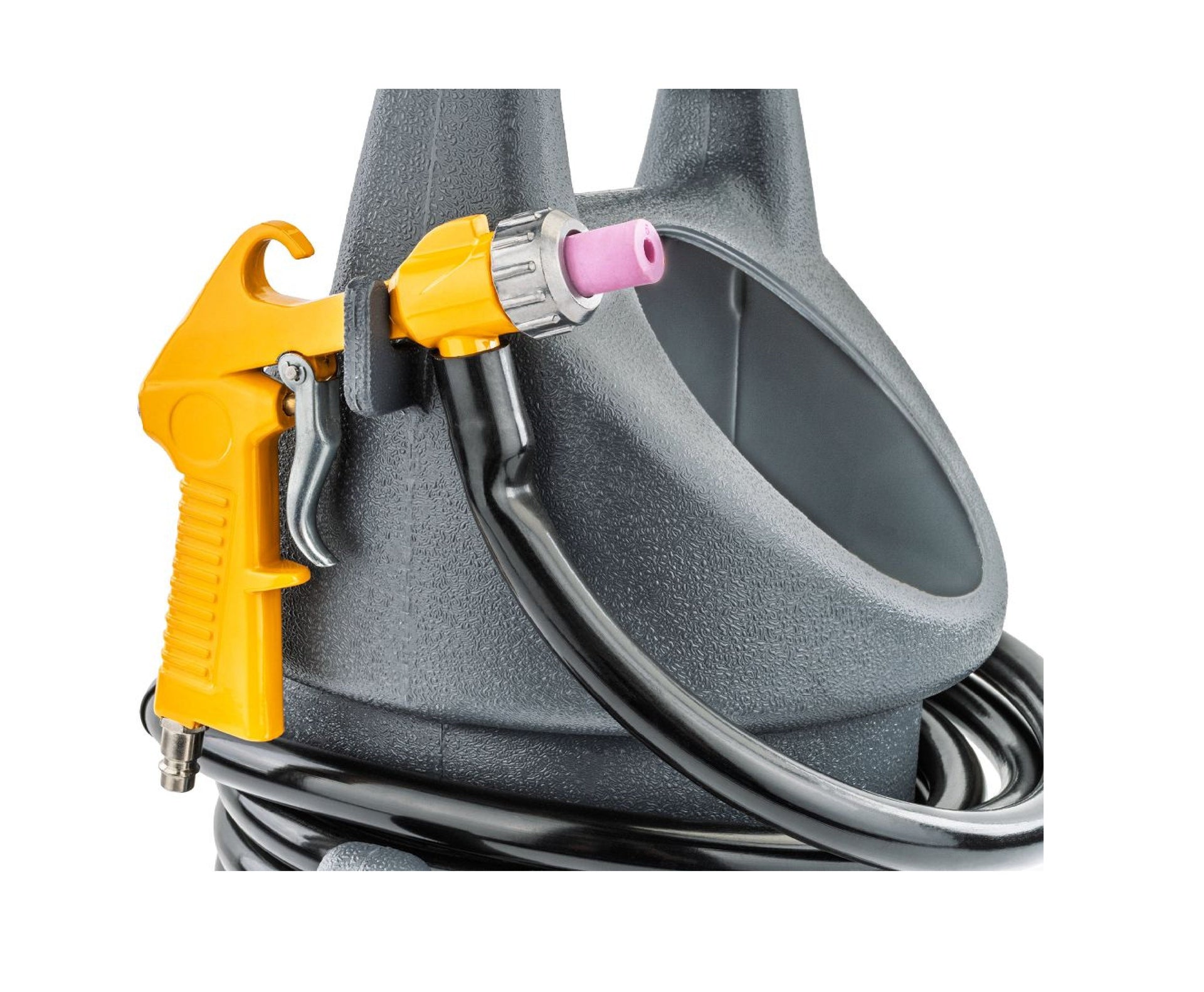 Dupa terminarea lucrului, goliti si suflati pur si simplu rezervorul si furtunurile pentru a preveni umezeala si aglomerarea abrazivului.