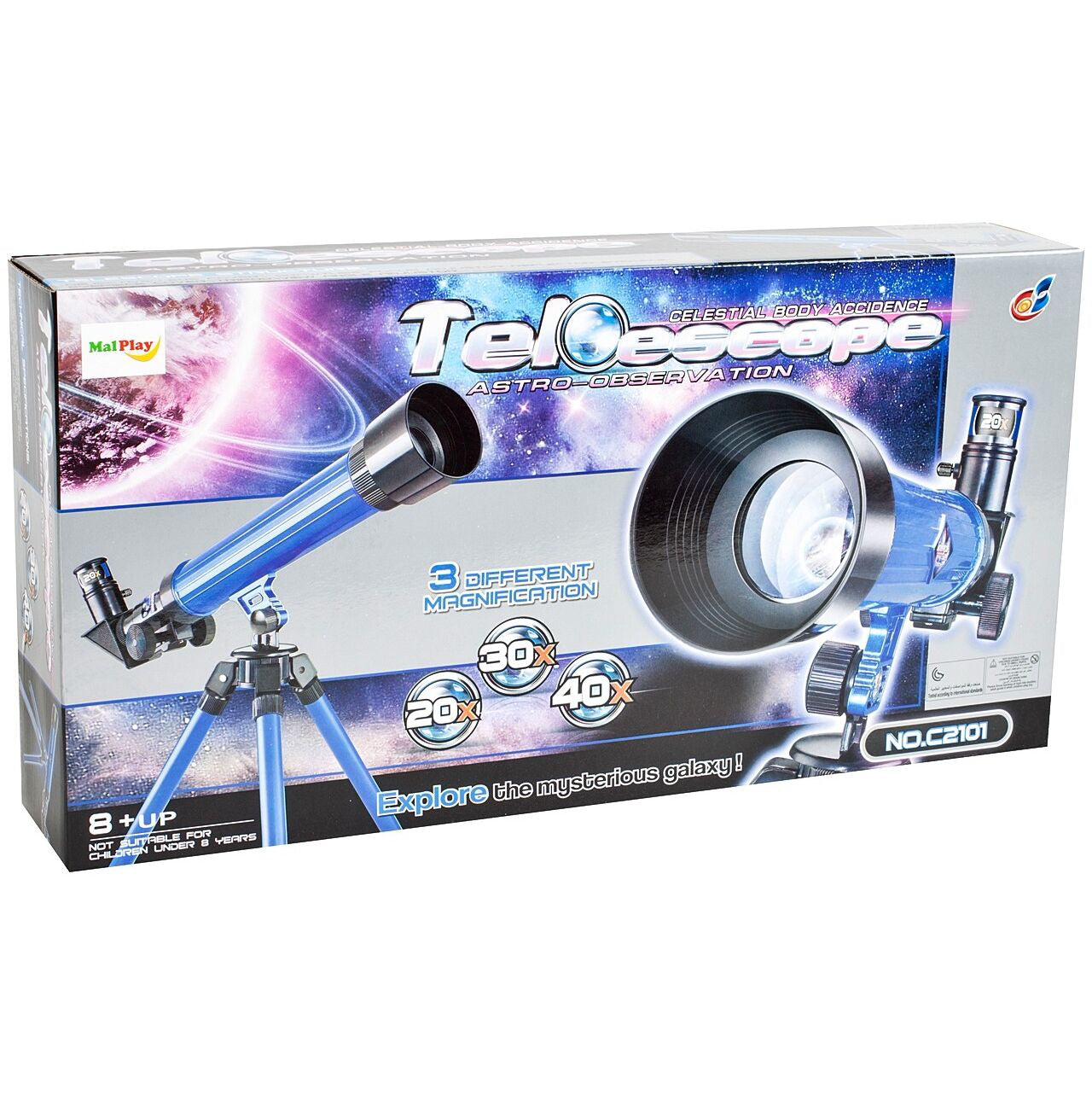 - Setul contine : 1 telescop cu 3 oculare de 20, 30, 40 si un stativ.