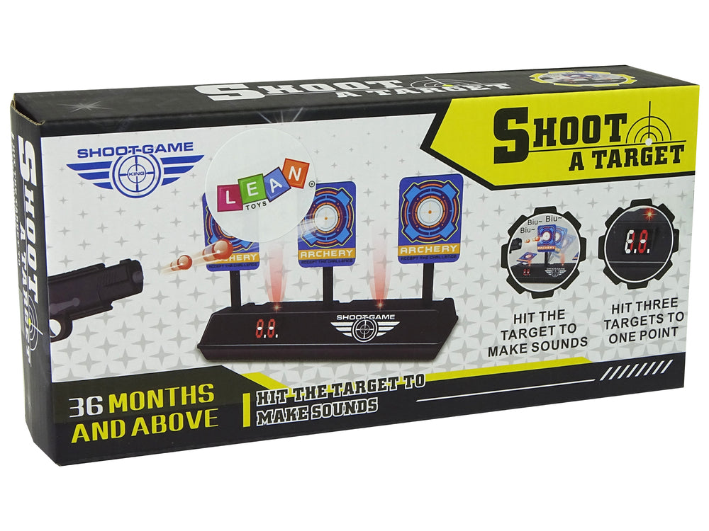 Tinta are efecte de lumina si sunet care fac jocul mai atractiv. Dupa o lovitura se aude sunetul impuscaturii si spargerea simbolica a sticlei. Fabricat din materiale solide, asigurand o functionare stabila si fara probleme.