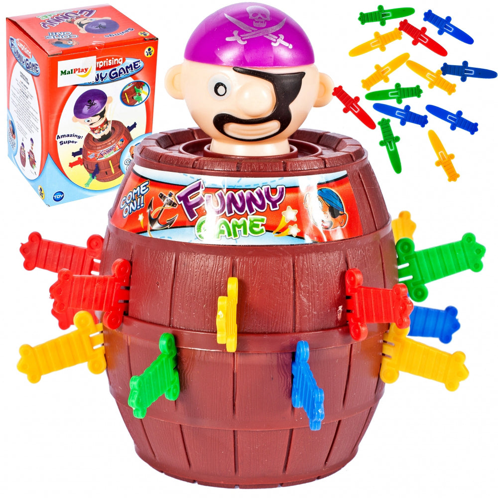 _x000D_Jocul consta in introducerea unei sabii in gaurile selectate din butoi. Daca o faci incomod, piratul va scapa din butoi si vei ... juca! Jocul necesita dexteritate si creeaza o tensiune extraordinara. Una dintre cele mai eficiente modalitati de a dezvolta abilitati interpersonale la copii este sa joci diferite jocuri cu cei dragi. Jocurile de masa sau de carti extind inteligenta, capacitatea de a te exprima eficient si de a comunica altora intentiile tale. Jocurile sunt, de asemenea, o modalitate excelenta de a ne distra impreuna !!! Datorita acestor jocuri, copiii pot petrece mai mult timp cu parintii lor.