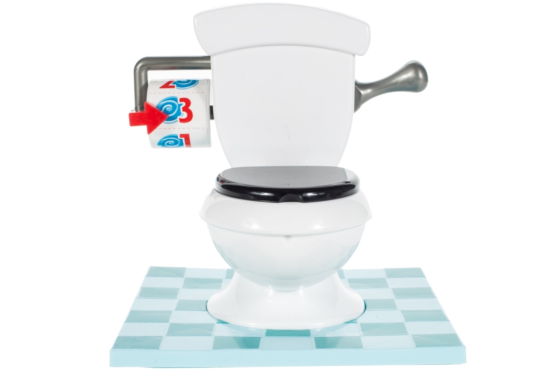 Aveți grijă să nu vă spălați! Răsuciți rola de hârtie pentru a afla numărul de curse de culoare pe care trebuie să le faceți. Dacă auzi sunetul apei de spălat? UF! Ai evitat Crazy Flush! Amintiți-vă, jucătorul care este stropit cu apă în timp ce trage de culoare este afară! Ultimul concurent uscat este câștigătorul!