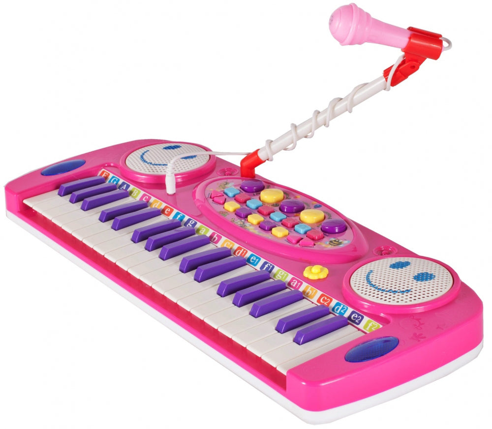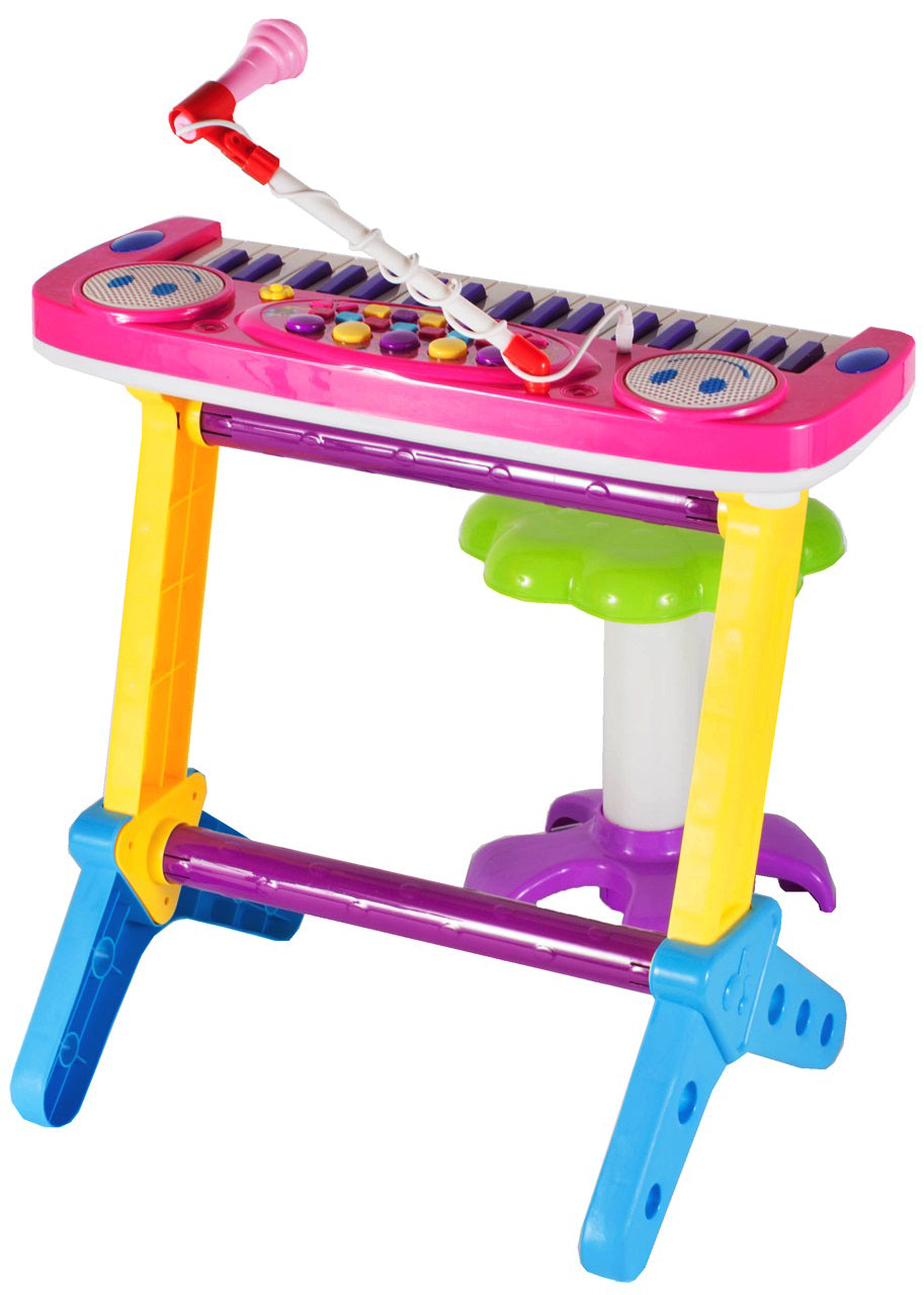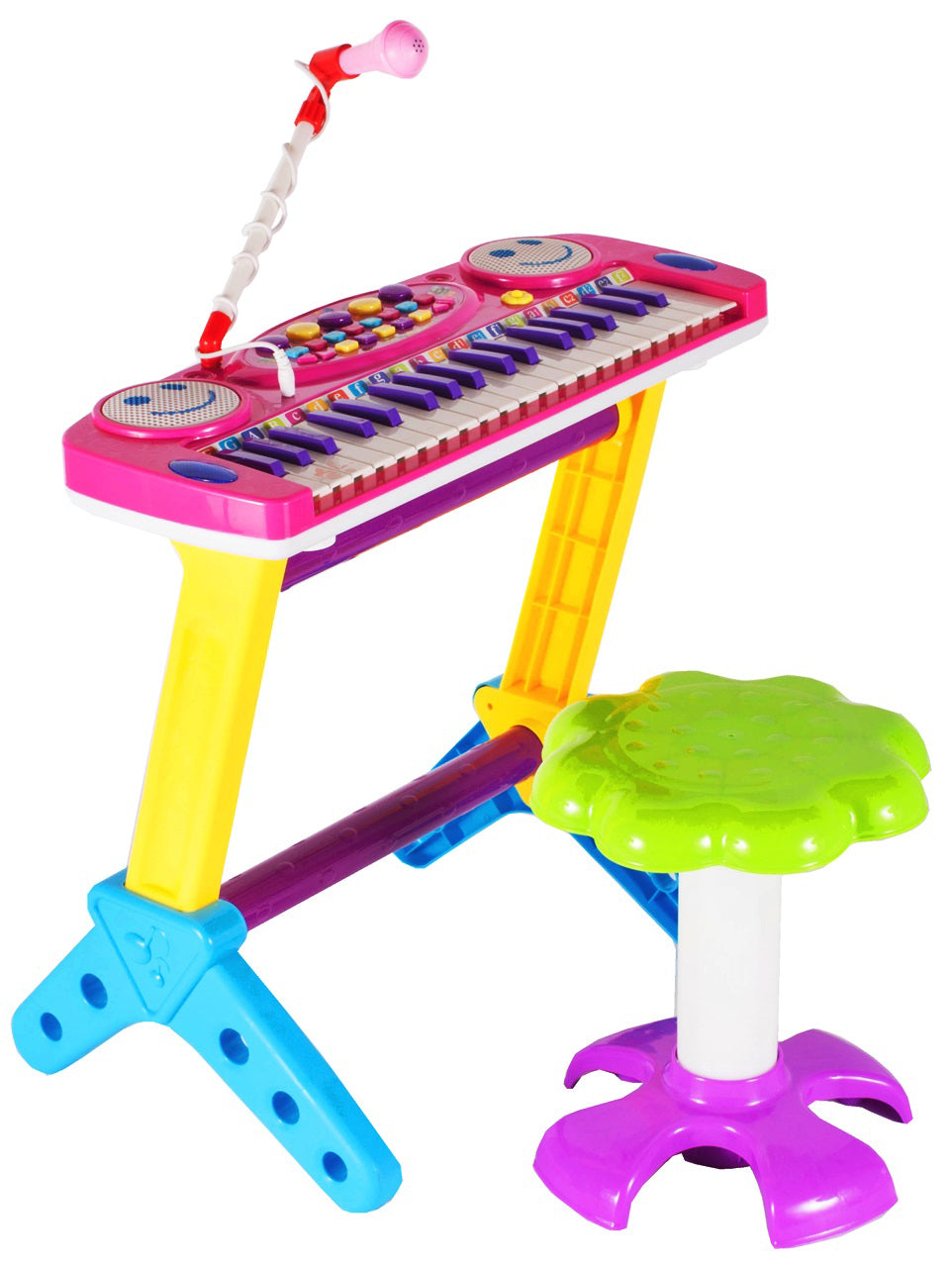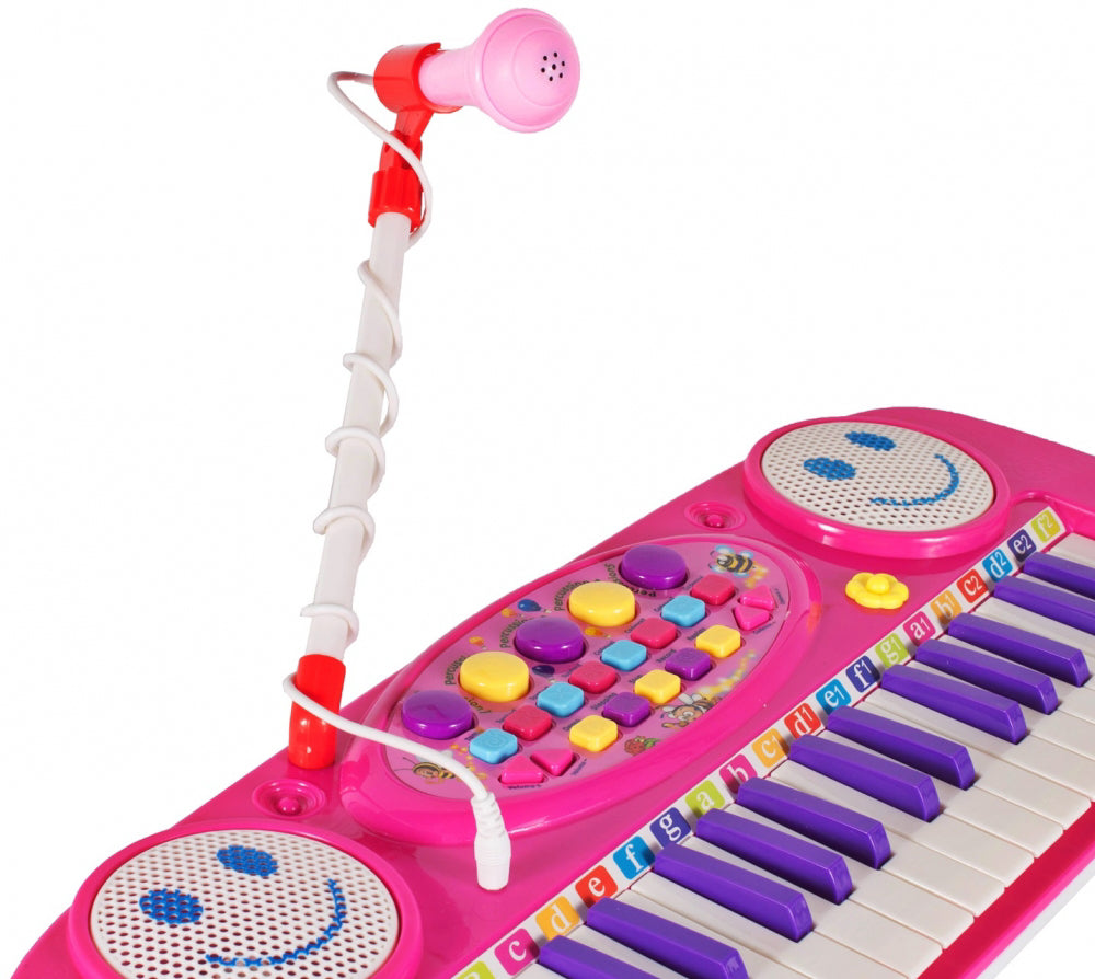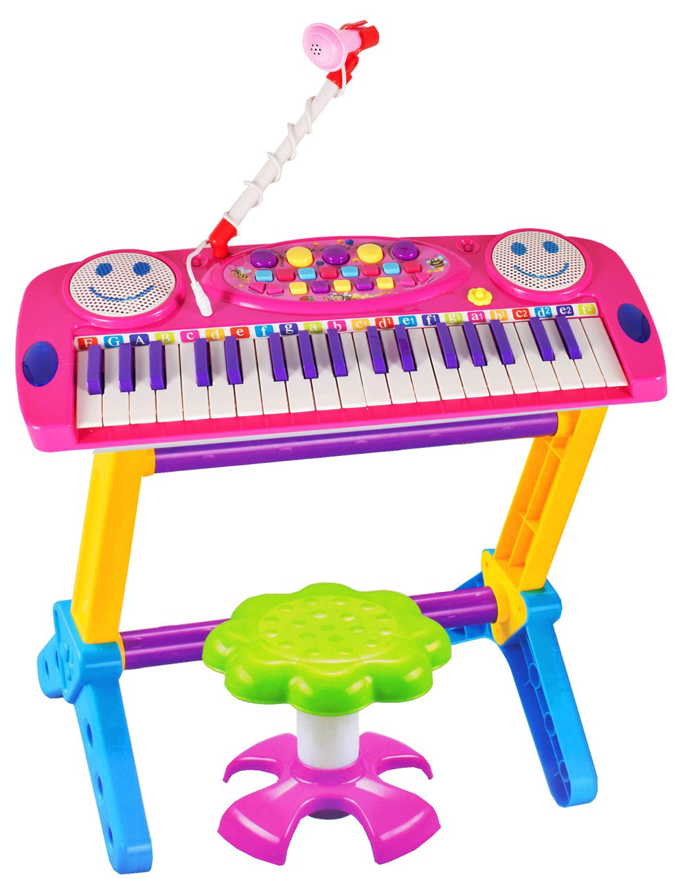 Are un cip de microcomputer integrat, difuzoare stereo, tonuri de inalta calitate si sunete moi. Tastatura distractiva cu 37 de taste de pian, microfon si scaun: bebelusul poate canta in timp ce canta! Inregistreaza si reda muzica personalizata! Comuta intre 4 sunete diferite si 4 ritmuri; 5 sunete de tambur diferite. 10 melodii demo; Volum reglabil; Zambete dragute pe difuzoare! Toate caracteristicile il fac o modalitate buna de a dezvolta conceptul de muzica veche, de a alimenta dragostea pentru muzica si de a stimula creativitatea micului tau muzician. Usor de asamblat!