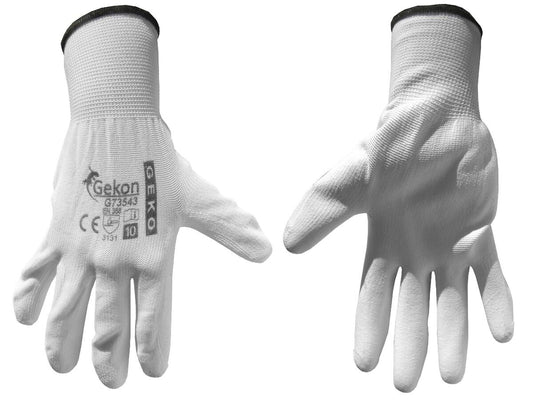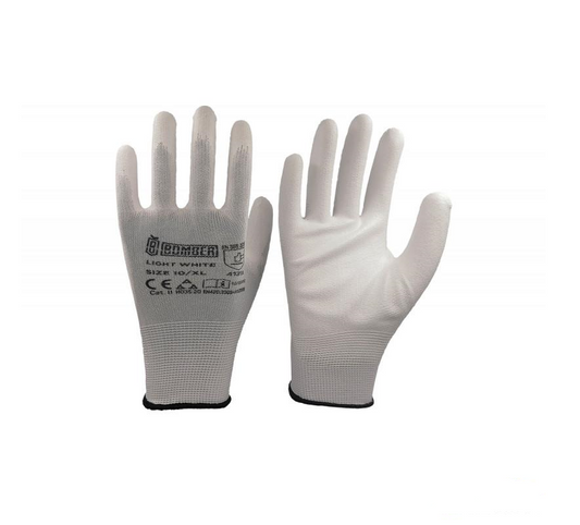 Mănuși de lucru acoperite cu poliuretanină (albă), mărimea 10