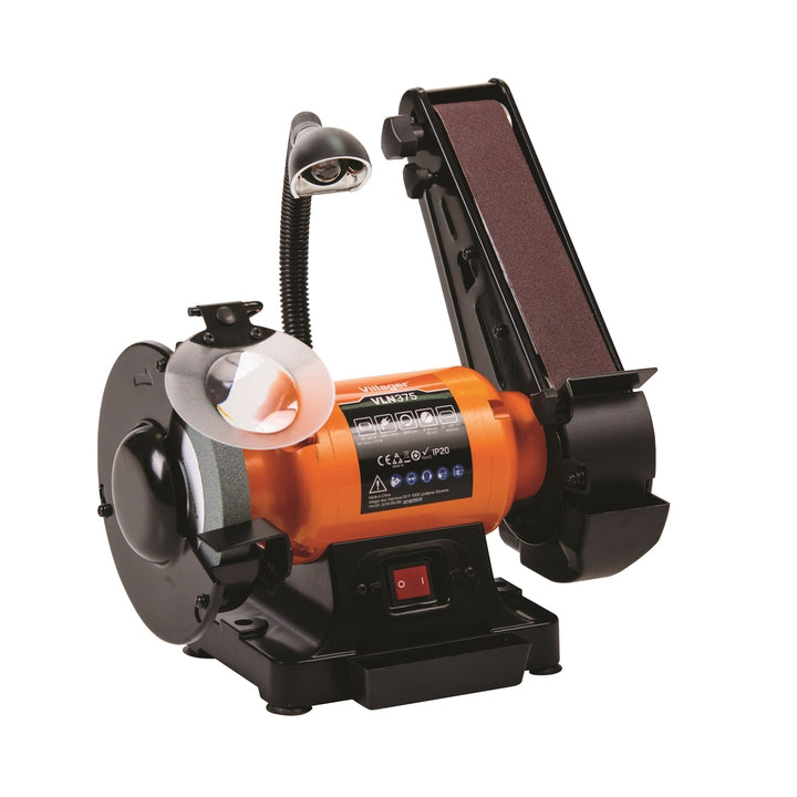 Polizor de banc - slefuitor cu banda VLN 375 de inalta calitate, cu o piatra si banda de slefuit inlocuibile. Acest polizor electric este ideal pentru slefuirea si ascutirea in atelierul vostru, in servicii sau ateliere mestesugaresti. Acest model este un ajutor compact si puternic, cu o putere de 375 W, ceea ce va va oferi o durata de viata lunga si o precizie ridicata de slefuire. Siguranta mai mare datorita protectiei reglabile impotriva scanteilor. In functie de scop, polizorul poate fi adaptat nevoilor dumneavoastra. Pachetul include o piatra si o banda de slefuit. In plus, are un bec de lucru practic, pe care cu siguranta il veti aprecia.