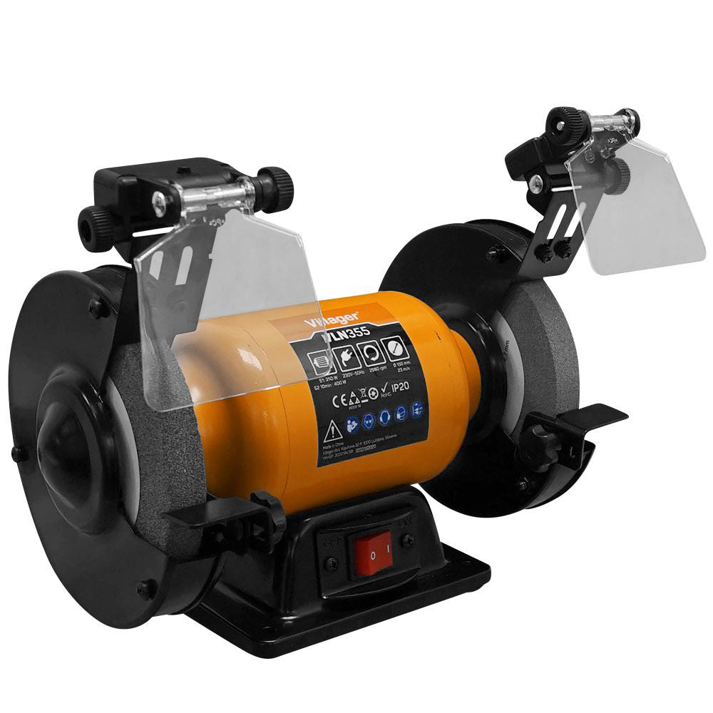 Polizorul de banc VLN 355 este un ajutor compact si puternic, cu o putere de 400W, ceea ce va va oferi o durata de viata lunga si o precizie ridicata de polizare. Este ideal pentru polizat sau slefuit lemn, plastic sau metal. Este dotat cu doua LED-uri de lucru pe baterii, reglabile deasupra fiecarui disc cu protectie impotriva scanteilor. Polizorul prezinta pe fiecare parte un suport de polizare cu distanta reglabila intre roata ce ofera o stabilitate foarte buna a obiectului.