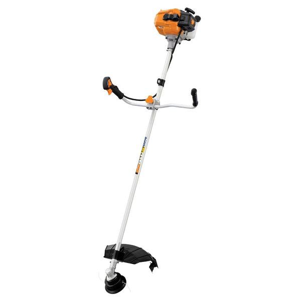 VILLAGER BC 43 EB motocoasa pe benzina este usor de utilizat cu o putere de 1,1 KW cu o capacitate cilindrica de 42,7 cm3. Motorul este in 2 timpi, racit cu aer. Acest model este conceput pentru a taia iarba in locurile inguste, unde cu o masina de tuns obisnuita nu se poate ajunge. Latimea de lucru 43 cm cu disc cu 3 dinti 25,5 cm. Este ideal pentru cosirea ierbii de orice fel si a oricarei inaltimi in livezi, pajisti sau gradini. BC 42 EB este echipat cu un maner de prindere cu ambele mainii. Inclus in pachet o tija de transmisie drepta cu dimensiunea de 28 mm si un ham confortabil pentru ambele brate.