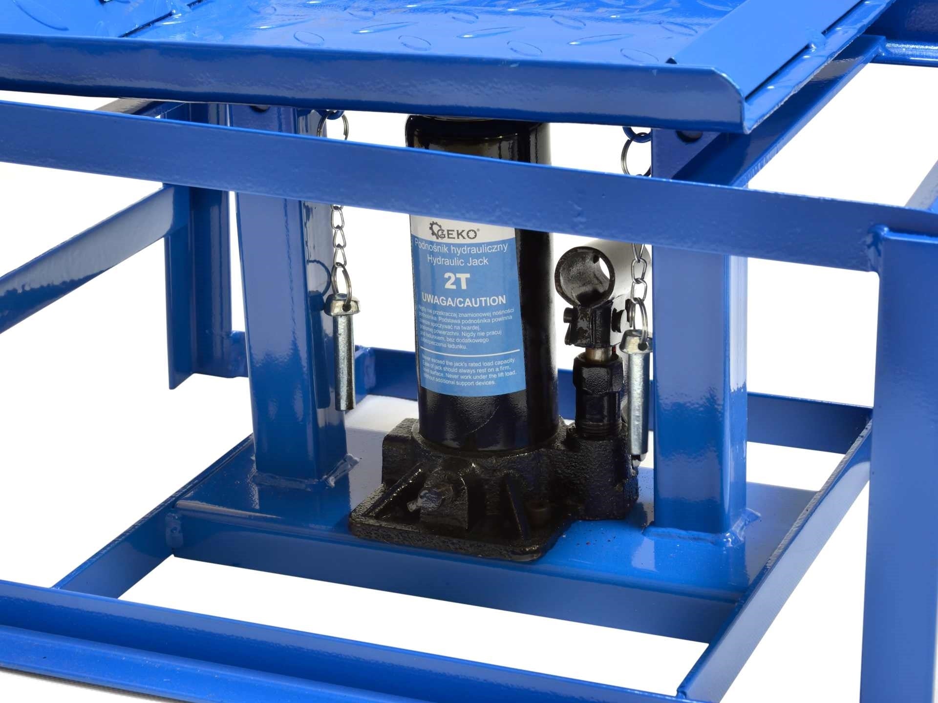 Rampa cu funcție de ridicare hidraulică. Pentru utilizare în timpul reparației și întreținerii vehiculelor în condiții de garaj, precum și în ateliere de mașini profesionale. Are un blocaj în înălțime în patru trepte.