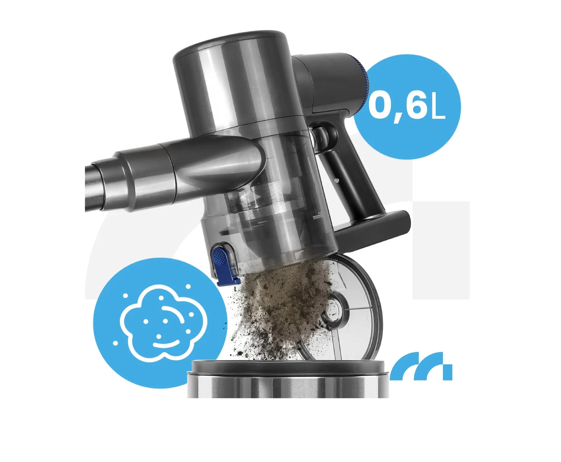Aspirarea cu TURBOCYCLONE PRO3000 este o placere pura! Designul compact si functionarea fara fir permit o curatare rapida si fara probleme. Uitati de saci si cabluri - alegeti confortul si usurinta in utilizare.