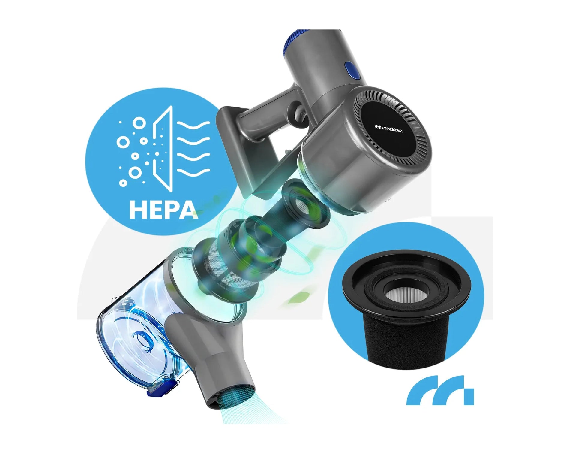 Filtrul HEPA incorporat capteaza eficient praful si alergenii, iar designul sau lavabil va permite sa mentineti cea mai mare eficienta de aspirare pentru o perioada lunga de timp.