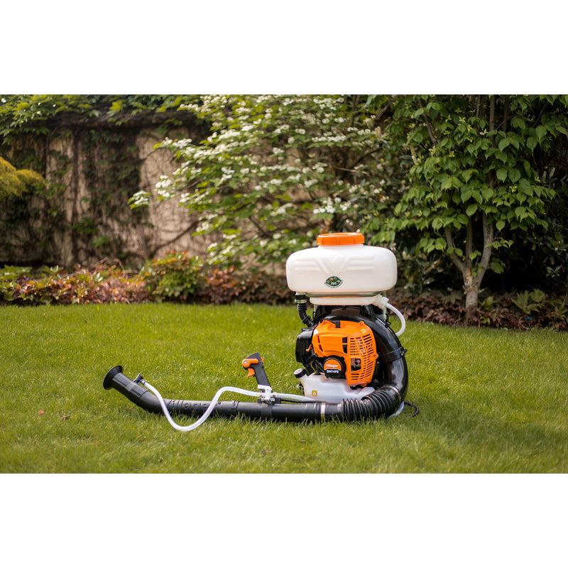 Pentru confortul complet atomizoare de spate are curele confortabile. Acest atomizor de spate popular cu o pornire usoara – prin tragere de sfoara. Pentru a reduce praful, pot fi adaugate cantitati mici de apa. Rezervorul cu un volum de 14 litri. Cu atomizor puteti lucra pe verticala si orizontala de la 6 la 9 metri.