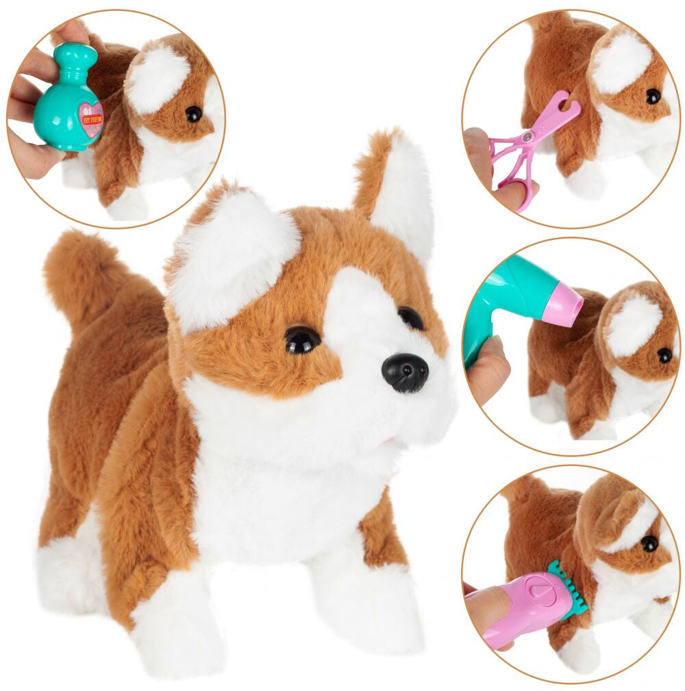 Un caine minunat si mic va deveni cel mai bun prieten al copilului tau. Cainele merge inainte, latra si isi misca coada.