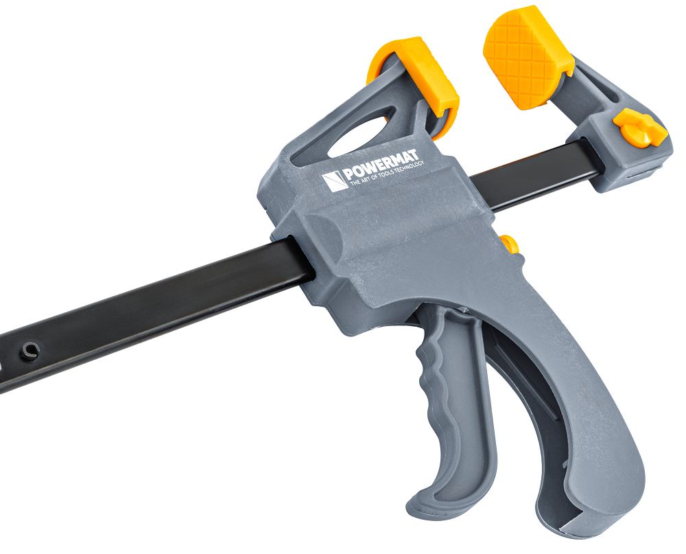 Clema de tamplar Powermat are un mecanism cu parghie care permite fixarea eficienta a elementelor folosind o singura mana.