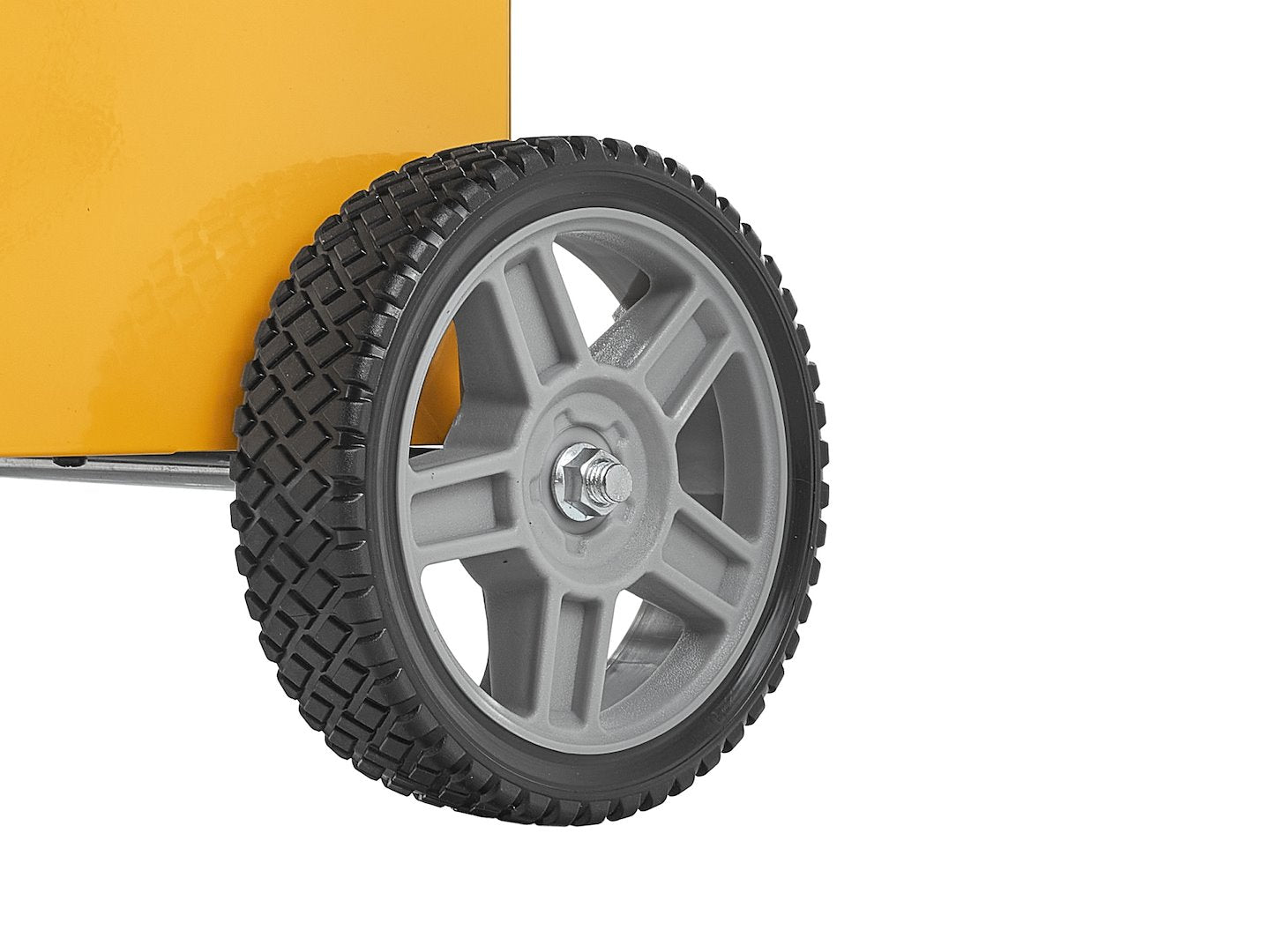 Aparatul este echipat cu patru roti, inclusiv doua roti pivotante cu frane, facandu-l usor de mutat, chiar si in spatii mari. Un maner convenabil faciliteaza si mai mult transportul, fie intr-o hala de productie, fie pe un santier. Aceasta solutie practica este ideala si pentru companiile de inchiriere, unde configurarea rapida si portabilitatea sunt cruciale.