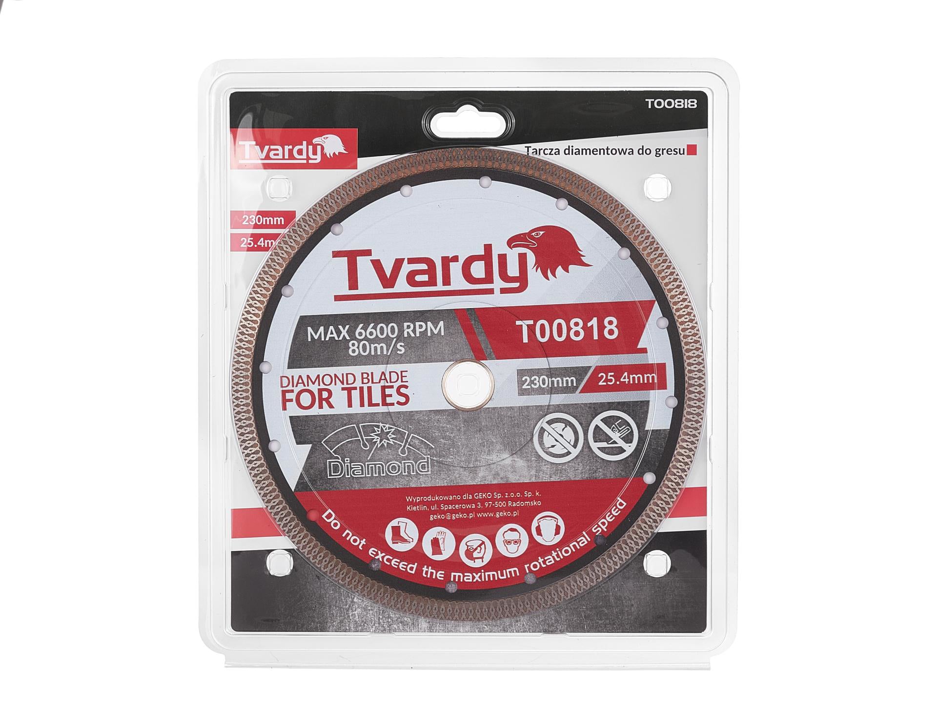 Disc diamantat profesional pentru gresie de la Tvardy . Discul are o janta canelata cu profil inchis si este destinat taierii materialelor dure precum gresie portelanata, marmura, tigle, granit, gresie, cuart . Disc diamantat cu un diametru de 230 mm si o grosime de 1,6 mm . Are o granulatie diamantata de 10 mm inaltime si 2,0 mm grosime.