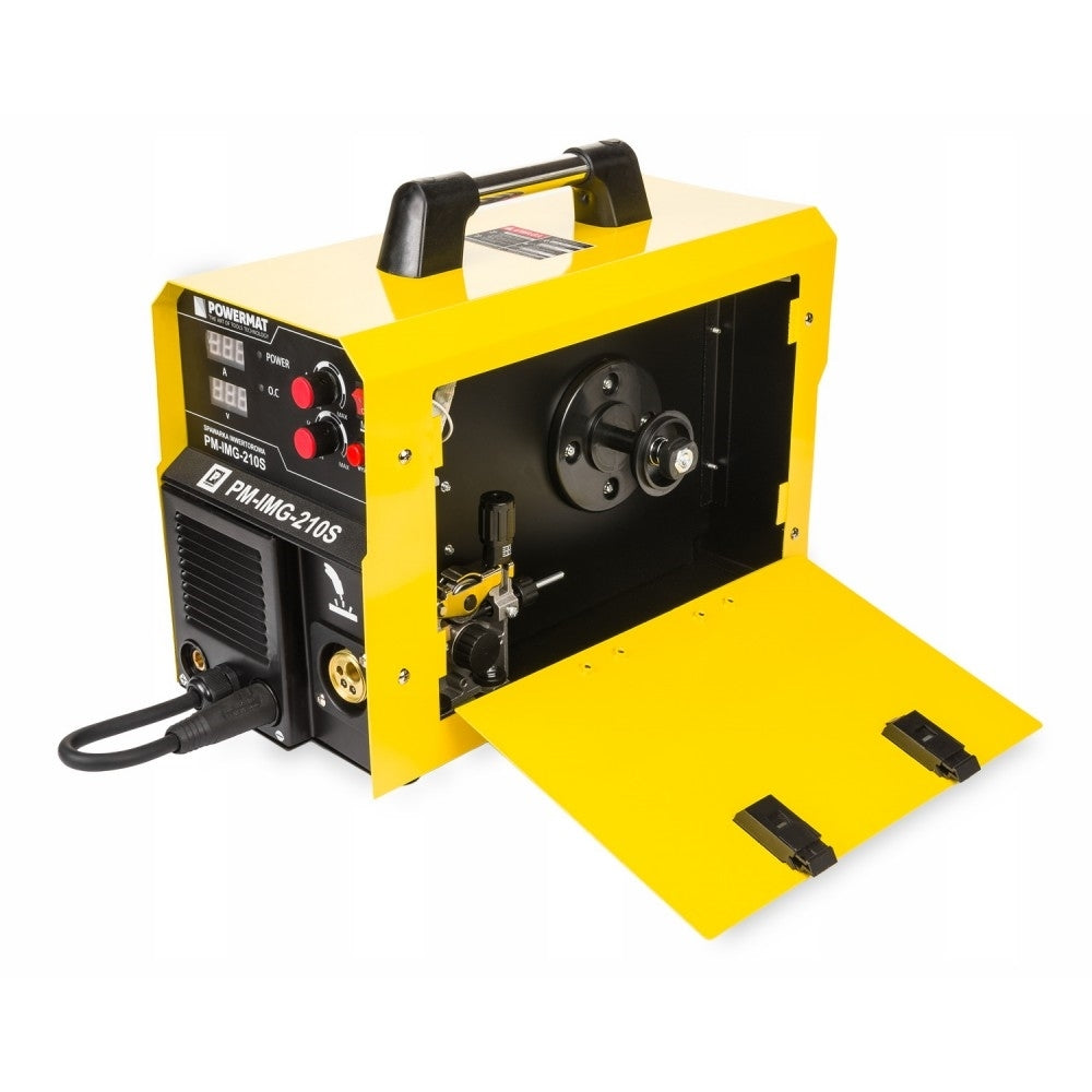 Reglarea parametrilor de sudare este infinit variabila (neteda), curentul maxim de sudare depinde de grosimea firului/electrodului utilizat, de tensiunea de sudare, precum si de viteza de alimentare a firului în cazul metodei MIG/MAG/FCAW. Alimentatorul cu doua role functioneaza cu sarma de 0,6 / 0,8 / 1,0 mm. Eficienta ridicata a sudorului permite sudarea cu curent 210A (pentru MIG / MAG / FCAW), si 190A pentru (MMA) într-un ciclu de serviciu de 60%. Întrerupatorul termic va opri dispozitivul în cazul depasirii ciclului de lucru admis pentru un curent de sudare dat, împiedicand astfel supraîncalzirea masinii de sudat. Parametrii actuali ai dispozitivului în timpul sudarii sunt afisati pe doua afisaje foarte lizibile care faciliteaza selectarea parametrilor optimi de functionare. Manipulatoarele confortabile si foarte lizibile va permit sa modificati parametrii de sudare chiar si cu manusi.