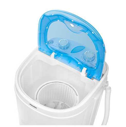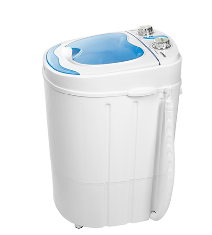 Masina de spalat, perfecta pentru calatorii mai lungi cu familia. Se potriveste cu usurinta intr-un portbagaj sau rulota. De asemenea, functioneaza bine in casele de vara datorita functionarii silentioase si eficiente. Cantareste doar 6 kg, dar poate incapea pana la 3 kg de haine. Acesta atinge o putere maxima de 400 W, care este suficienta pentru a spala hainele folosite in timpul sportului sau pentru a lucra in gradina. Conceputa pentru a utiliza cat mai putina apa si energie, masina de spalat este un accesoriu bun pentru cei care apreciaza curatenia si activitatea in acelasi timp. De asemenea, are o functie de centrifugare, pe care o puteti folosi dupa spalarea hainelor si scurgerea apei.