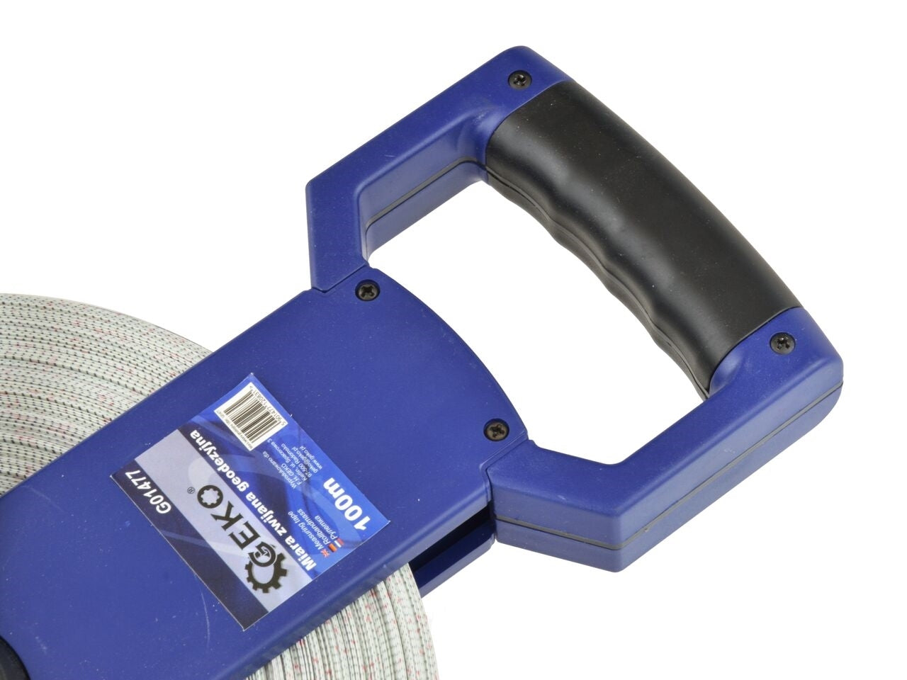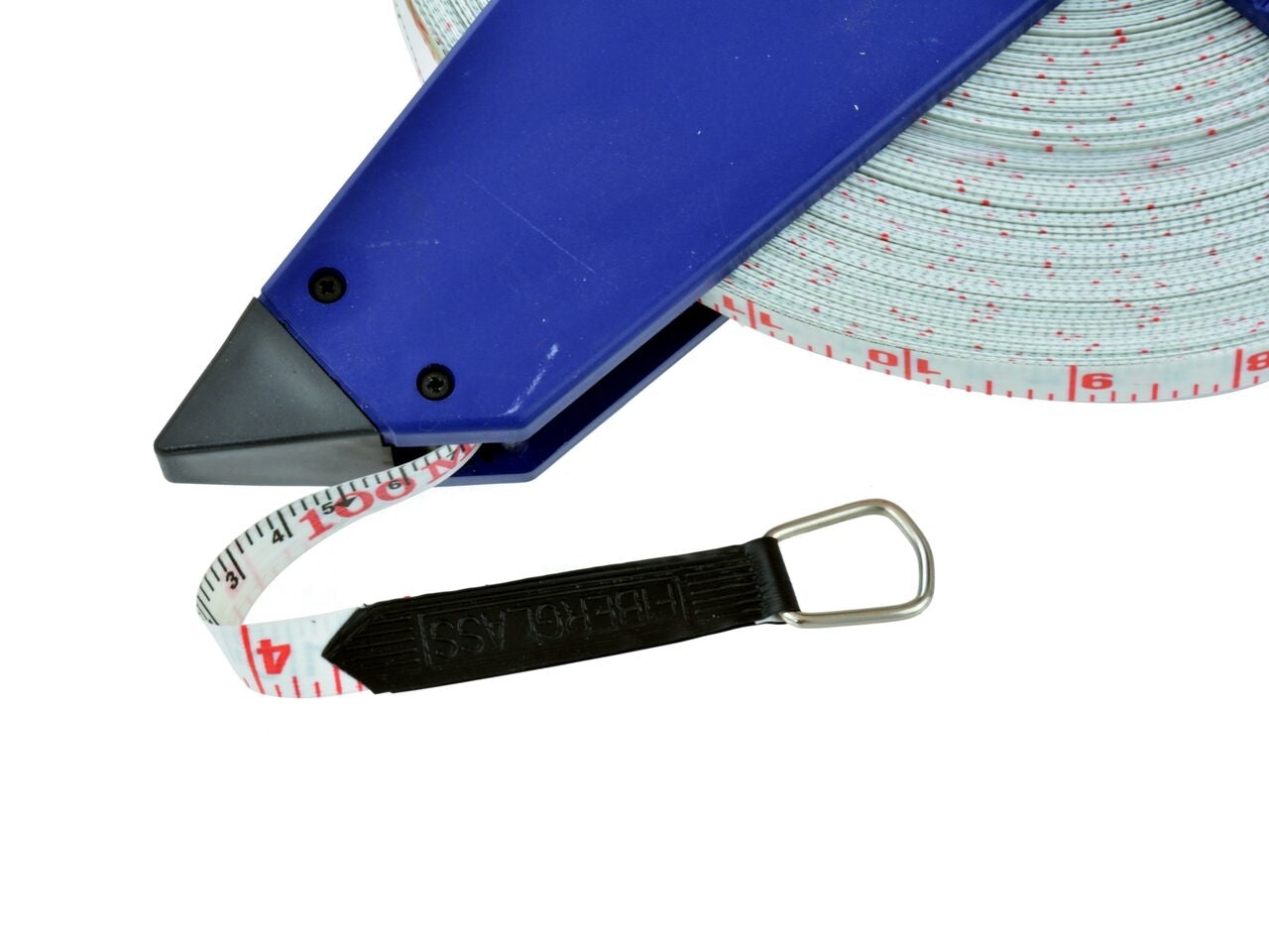 Banda de masurare geodezica 100 m proiectata pentru masurarea distantelor lungi în zone deschise si închise. Masura cu banda din fibra de sticla (GRP ), caracterizata prin rezistenta ridicata si la abraziune si rezistenta la estompare. Partea inferioara a cutiei de masurare cu varful permite vâarful contorului sa fie împamantat si masurat de o persoana.