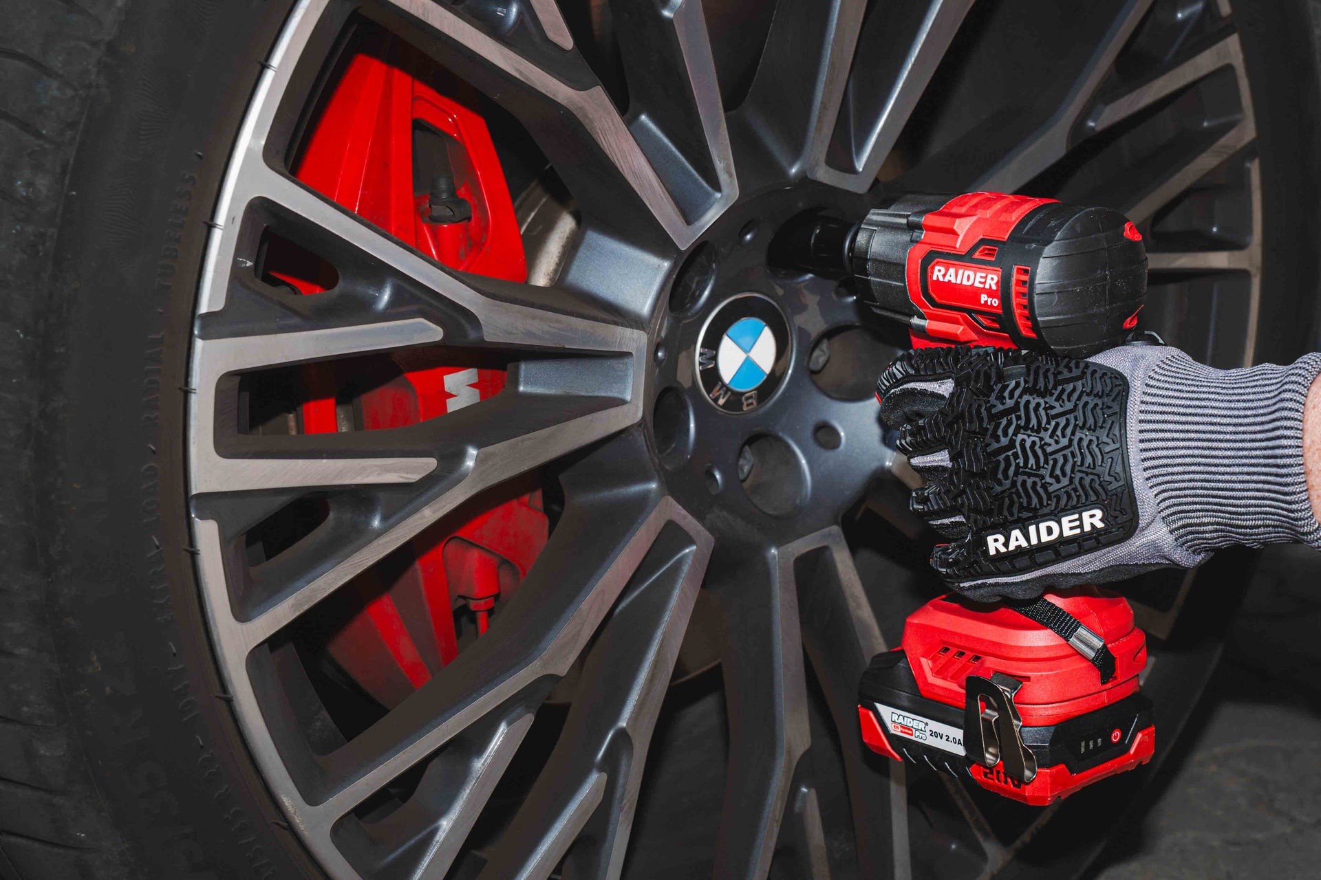 Set bormasina, polizor unghiular si cheie de impact cu acumulator, 2 x 2 Ah, Raider 030255