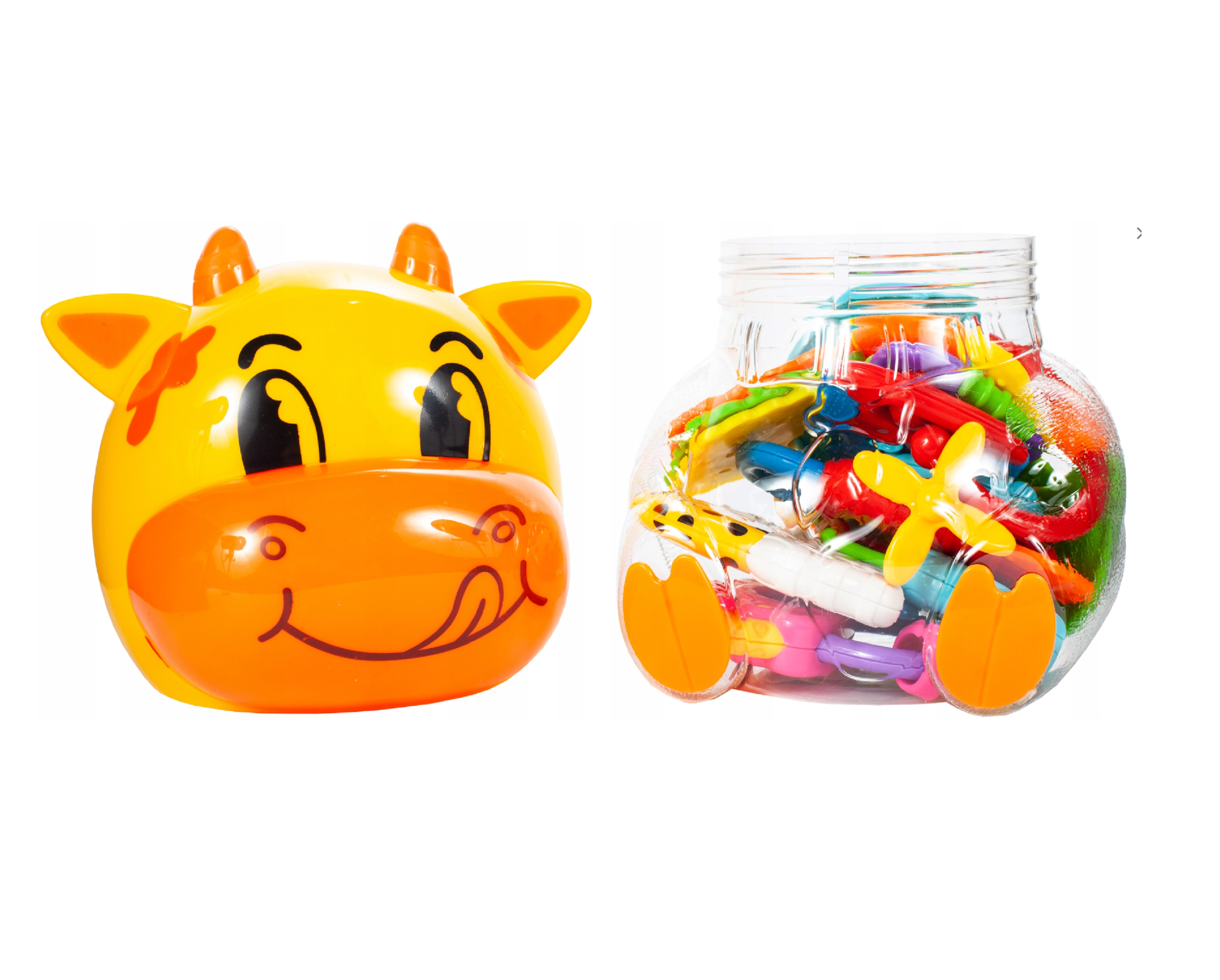 Set jucarii dentitie, zornaitoare, cutie in forma de vacuta, 7 elemente, MalPlay 108135