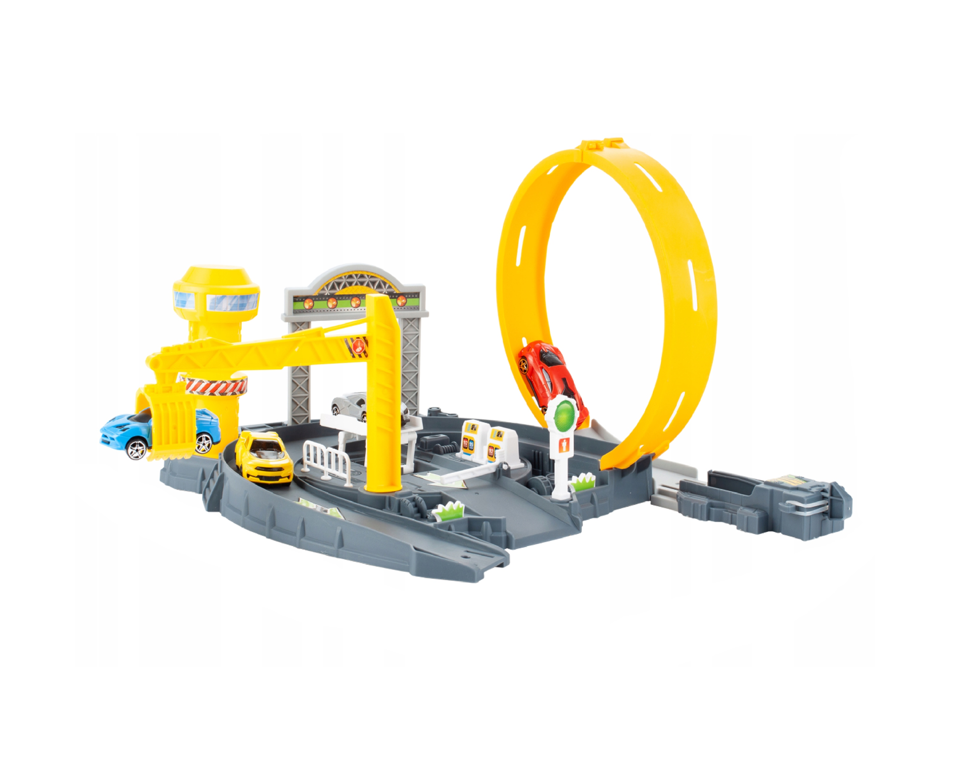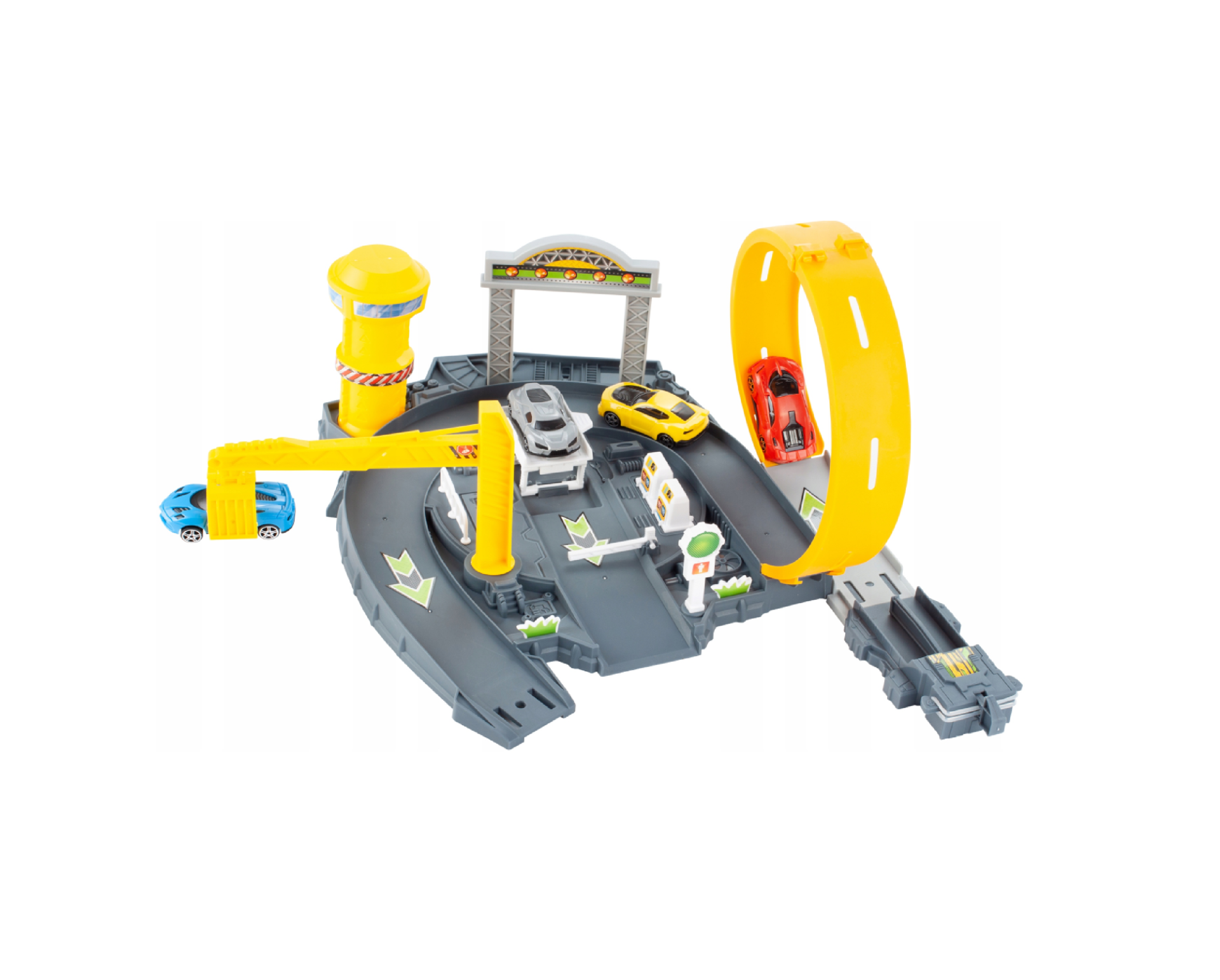 Set pista de curse cu 4 masinute, 45 x 30 x 23 cm, MalPlay 108445