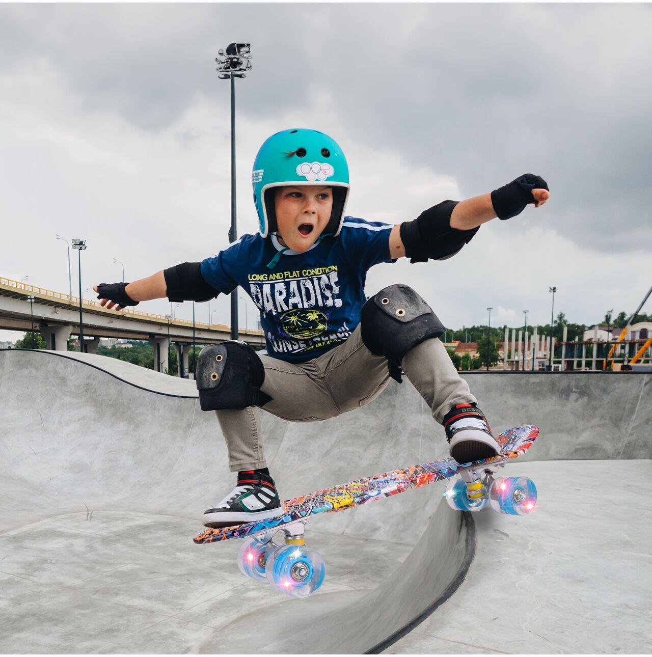 Skateboard Graffiti cu roti luminoase LED RGB, 56x14,5cm, MalPlay 112333