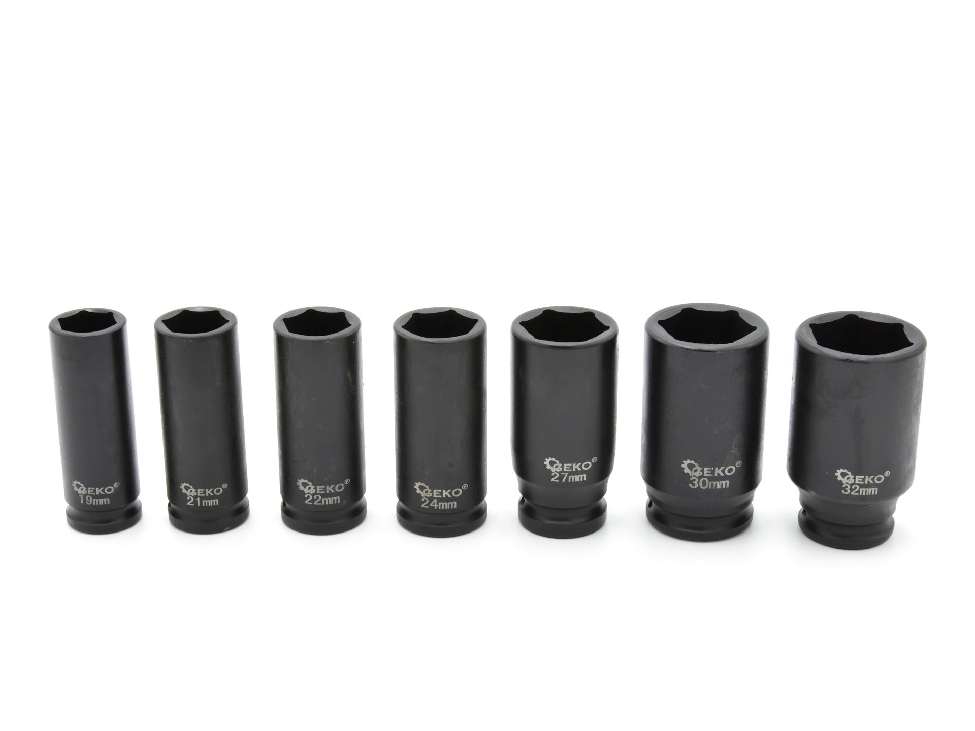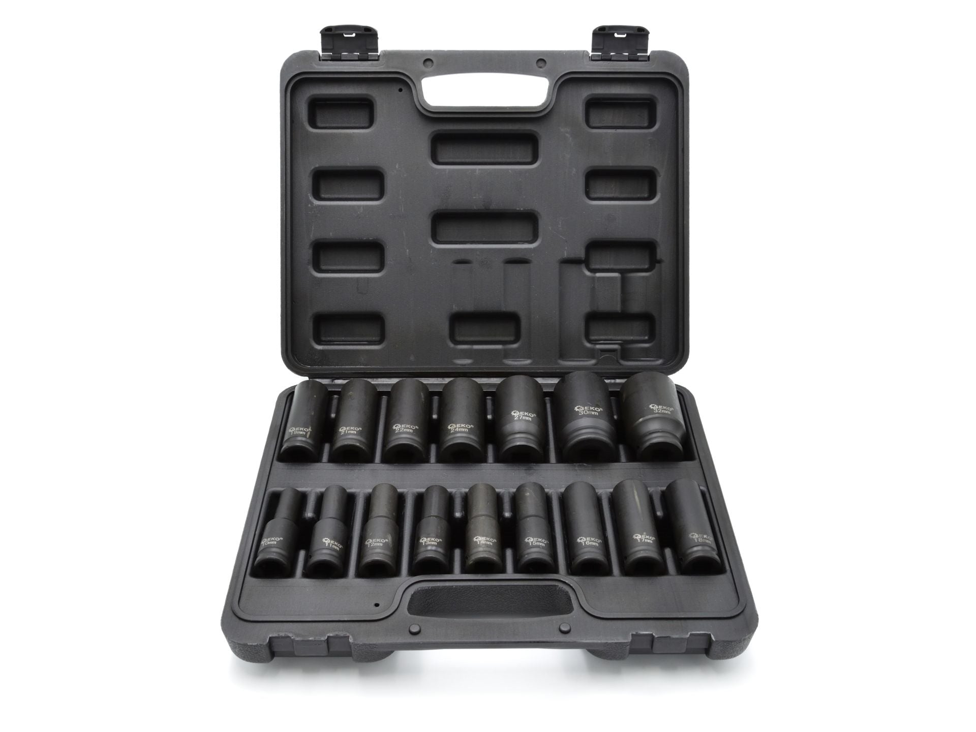 Set de soclu de impact, lung 1/2 ". Set include 16 capace ambalate într-o carcasă din plastic.