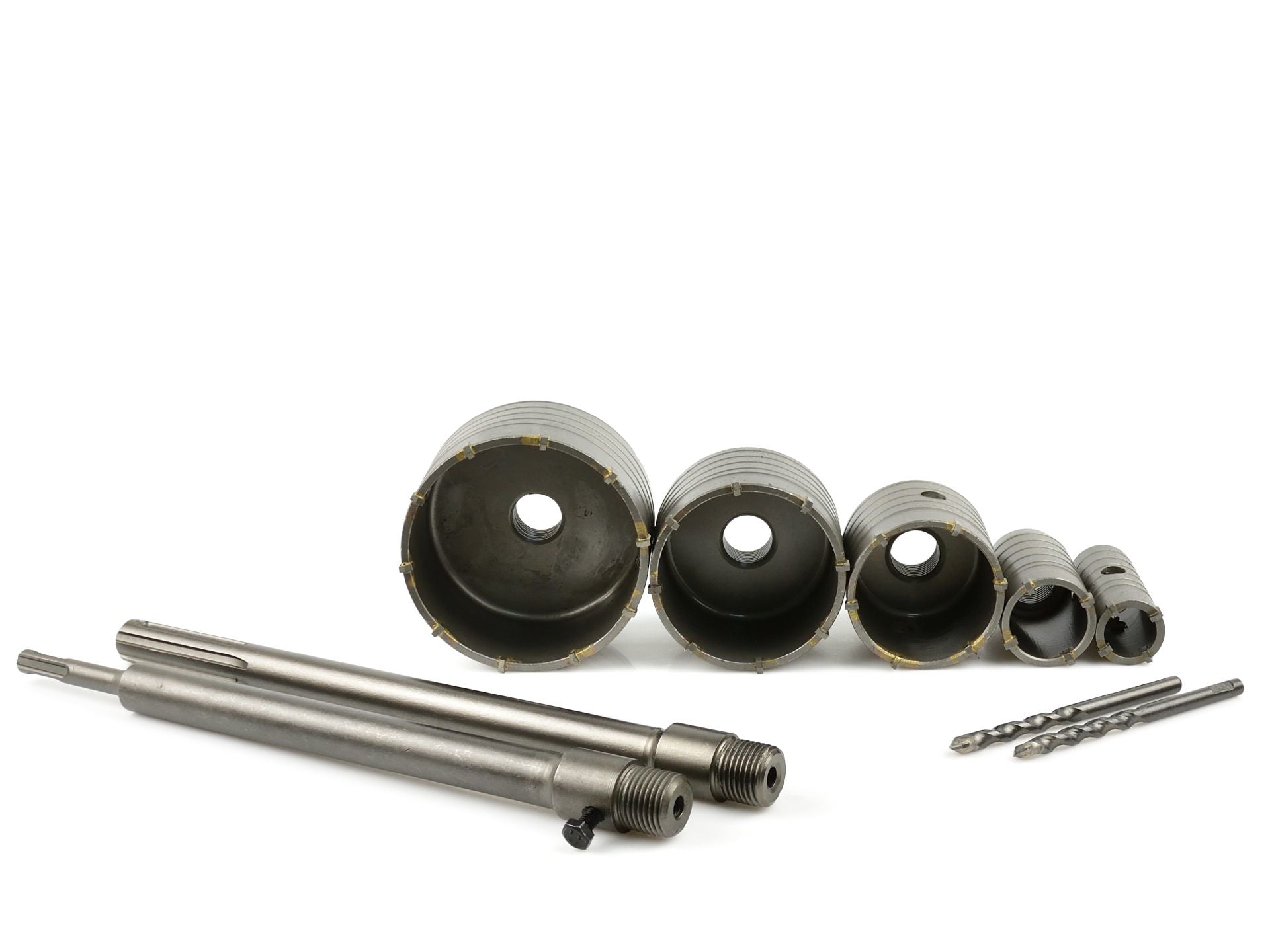 Un set fabricat din materiale de cea mai inalta calitate. Janta dintata a carotelor cu gauri este realizata din carburi sinterizate . Setul include adaptoare de 300 mm cu burghiu pilot , destinate utilizarii cu burghie cu suport de montare SDS-Plus sau SDS-Max .
