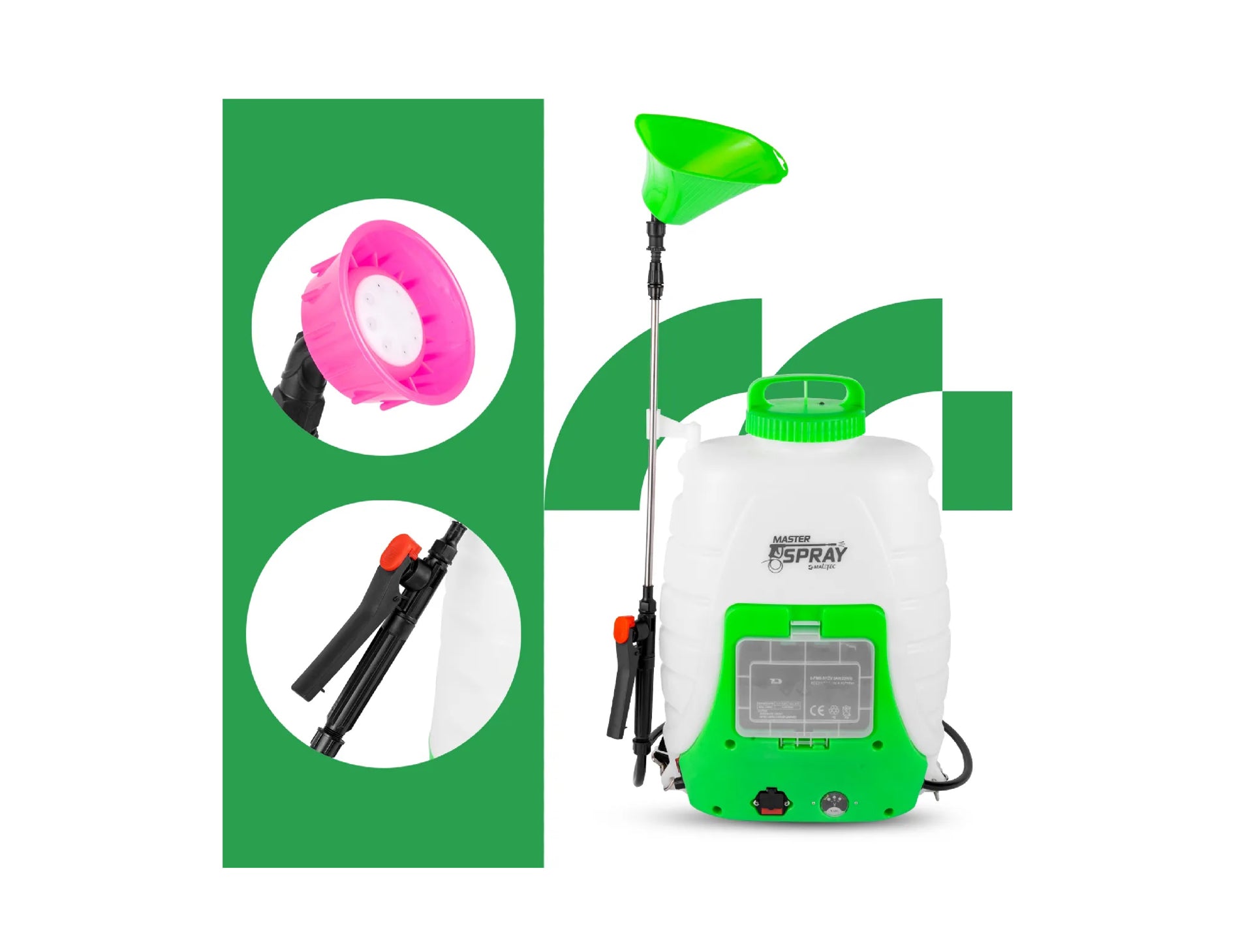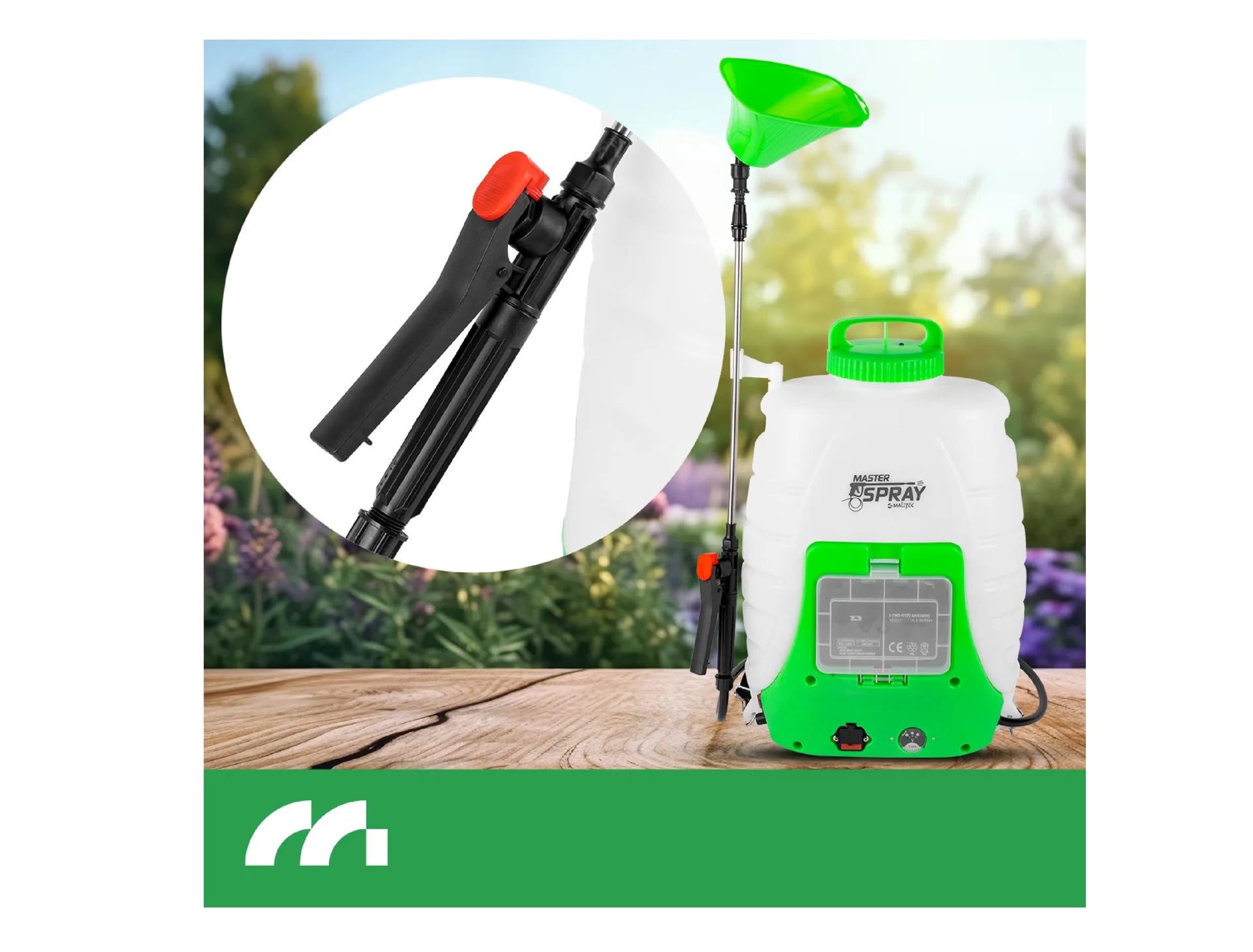 MasterSpray-18L este un produs care este perfect atat pentru gradini mari, parcuri cat si pentru campurile agricole. Datorita capacitatii mari a rezervorului de 18 L, puteti lucra mai mult fara a fi nevoie de reumplere frecventa. Bretelele confortabile si designul ergonomic asigura confort chiar si in timpul utilizarii pe termen lung.
