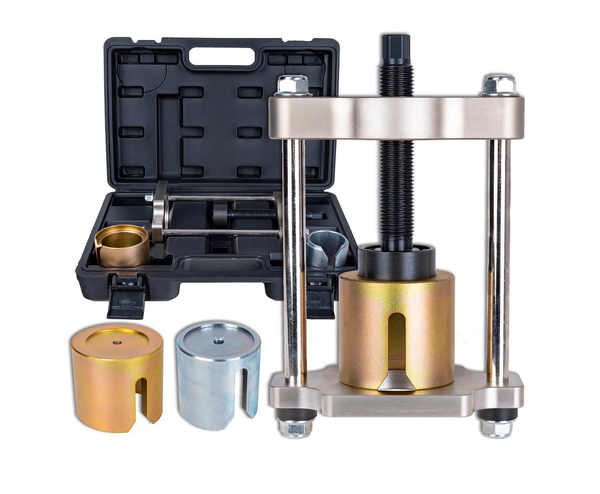 Kit profesional de extragere a bucselor bratului de control spate, conceput pentru inlocuirea rapida si sigura a bucselor uzate la vehiculele Ford, Mazda si Volvo.