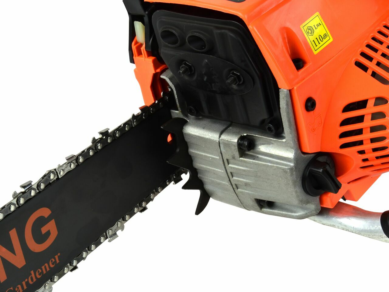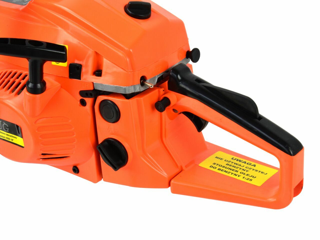 Motofierăstrău conceput special pentru lucrări profesionale , cu pornire de tip sfoară și alimentare pe benzină. Motorul este format din 2 timpi, produsul fiind de culoare portocaliu.