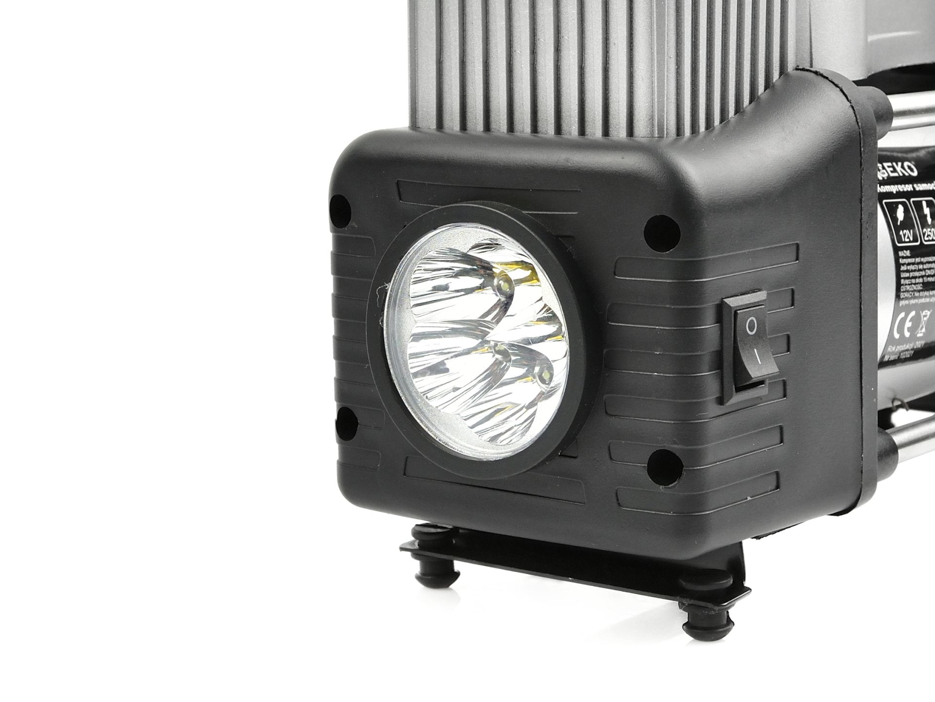 Compresor auto de 250W alimentat cu tensiune de 12-13,5V de la priza bricheta sau direct de la baterie. Echipat cu un manometru din otel lizibil in 3 unitati: Bar, PSI si kg/cm2 . Are un varf de insurubare adaptat supapelor auto, care se folosesc si la motociclete si biciclete. Lanterna incorporata va permite sa utilizati confortabil compresorul pe timp de noapte, fara a fi nevoie de o sursa de lumina suplimentara. In plus, setul include un furtun pneumatic spiralat si un set de 3 duze pentru umflarea mingilor, saltelelor etc.