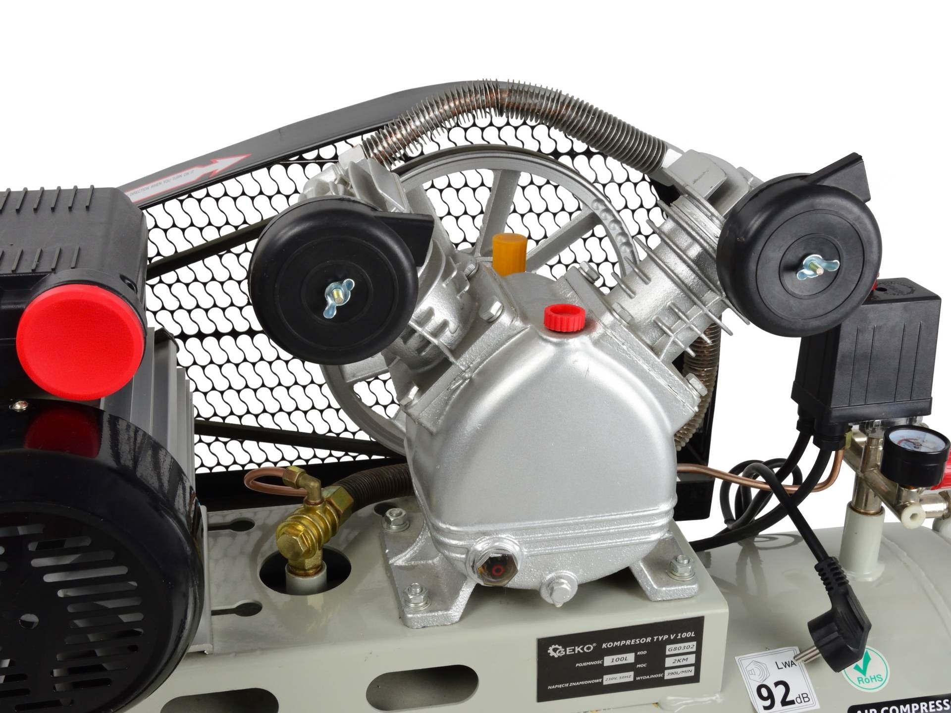 _x000D_Compresor de ulei cu motor puternic de 2 CP și capacitate a rezervorului de 100 litri. Echipat cu un reductor de presiune care vă permite să reglați valoarea presiunii în rezervor.