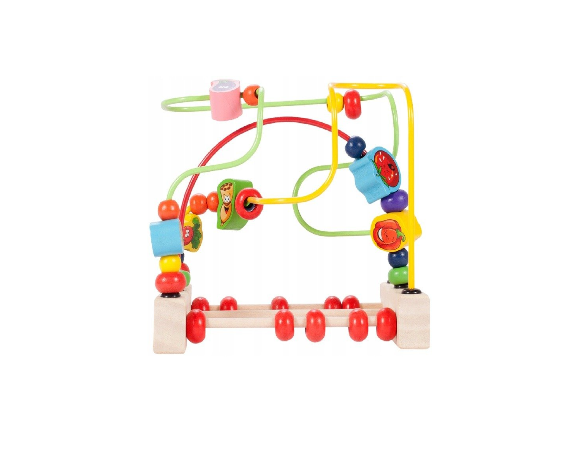 In labirintul colorat, copilul va gasi blocuri de diverse forme si culori. Distractia consta in deplasarea elementelor din lemn de-a lungul pistei asezate pe o baza de lemn, pistele separate ale labirintului au o forma interesanta si complicata, iar culorile vii si legumele aratate il vor incuraja suplimentar pe copil sa se joace. Jucaria imbina perfect functia educationala cu distractia. Va dezvolta perfect abilitatile manuale.