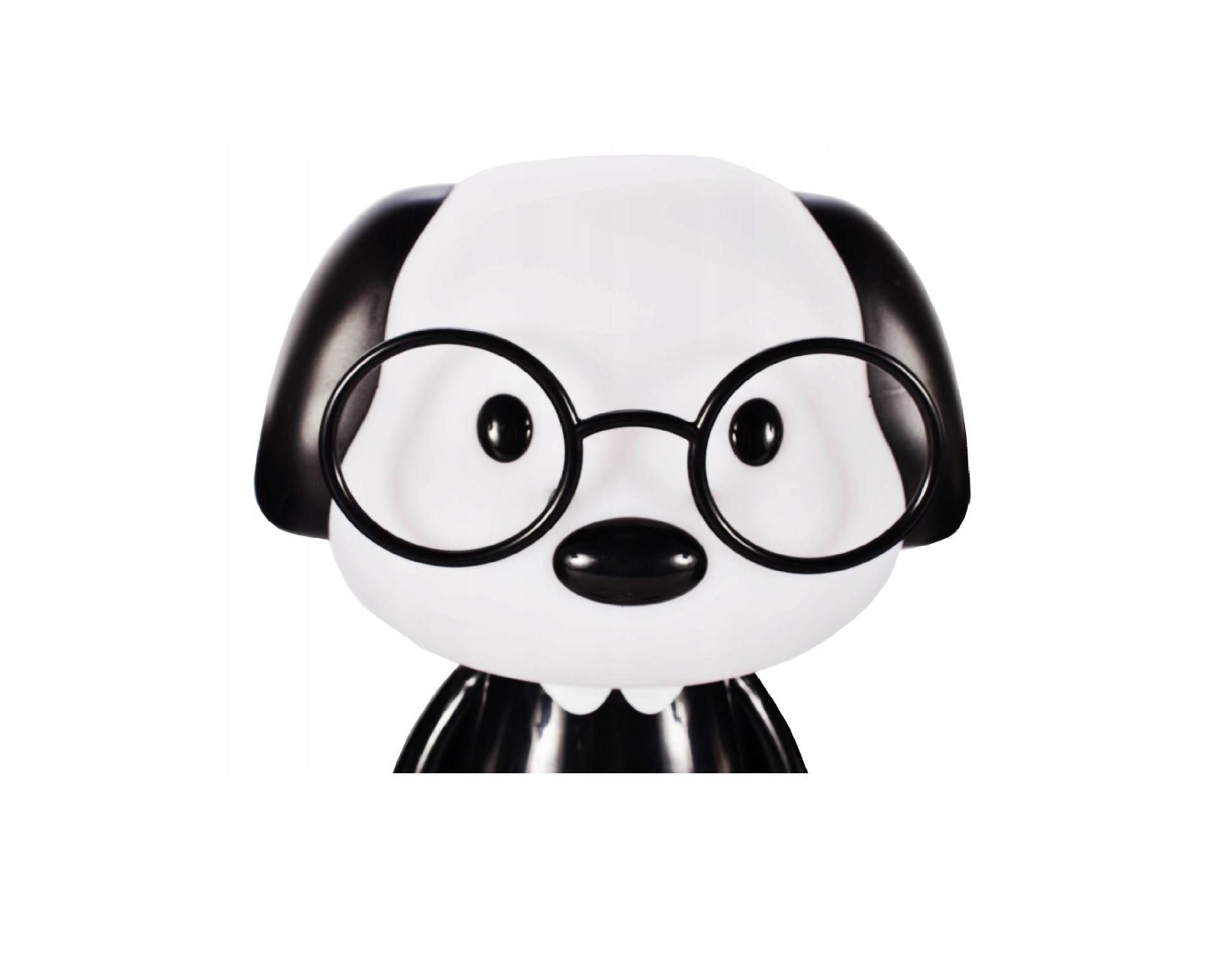 Cainele are un cap mare cu ochelari in interiorul caruia se afla un bec LED. Comutatorul tactil este situat pe burtica cainelui. Acesta este cel mai silentios mod, chiar si atunci cand copilul inca adoarme, parintele poate stinge lampa fara riscul ca bebelusul sa se trezeasca.