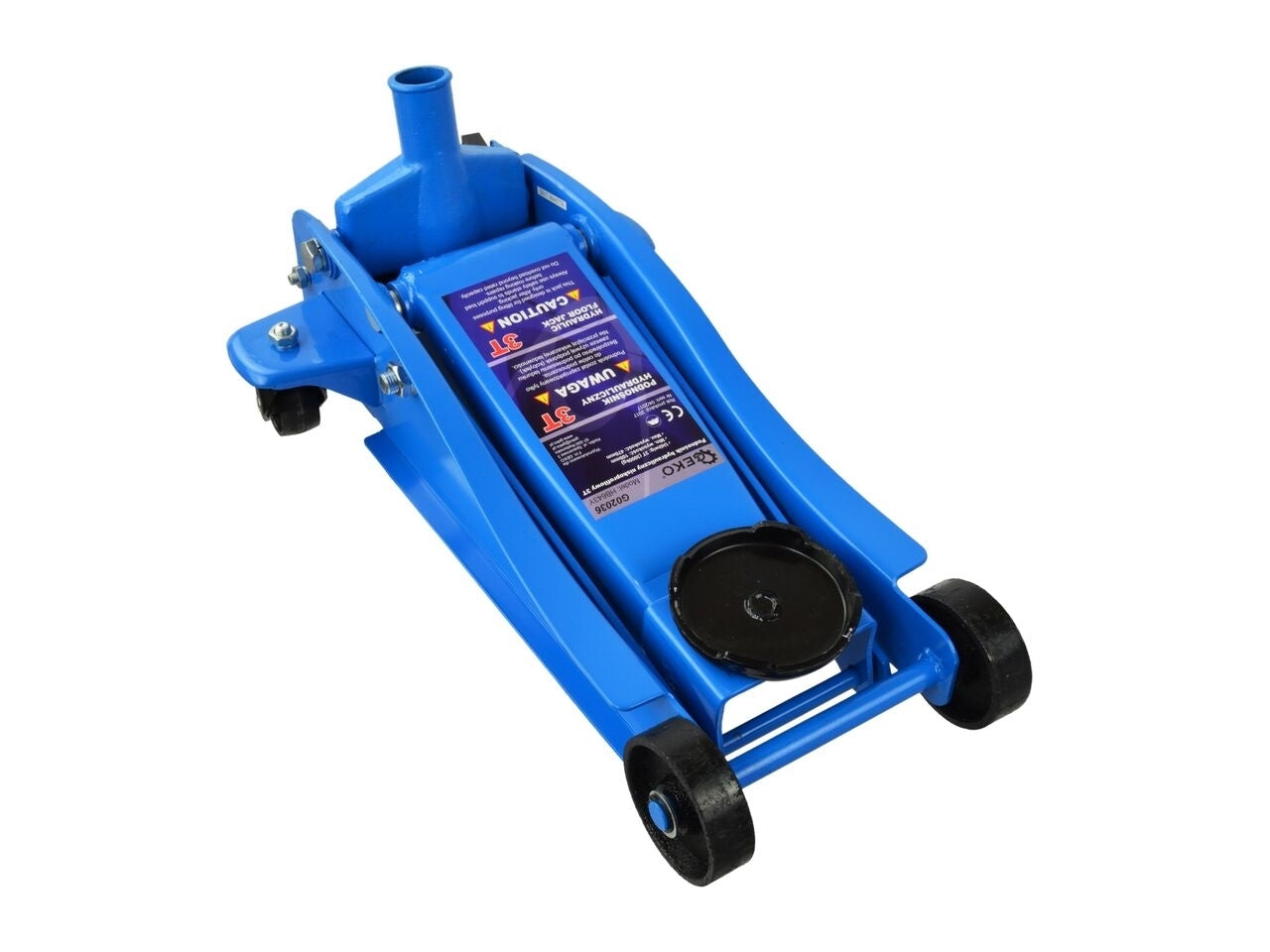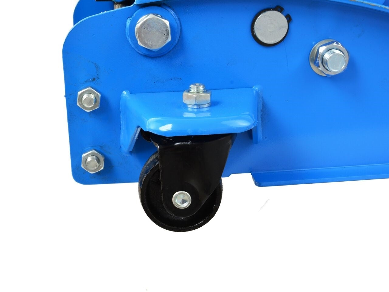 Cric hidraulic profesional. Cadrul larg, intarit, permite operarea in siguranta a dispozitivului. Patru roti, inclusiv doua pivotante, asigura o mobilitate ridicata a ascensorului.