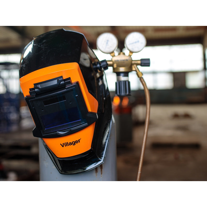 Masca de sudare completa automata, profesionala VILLAGER Eclipse + pentru a va proteja fata si ochii de radiatii nocive, scantei si imprastieri. Masca de sudare se intuneca de la sine si se schimba automat de la modul luminos la modul intunecat. Aceasta masca de sudare usoara este o alegere ideala pentru diferite tipuri de sudare.