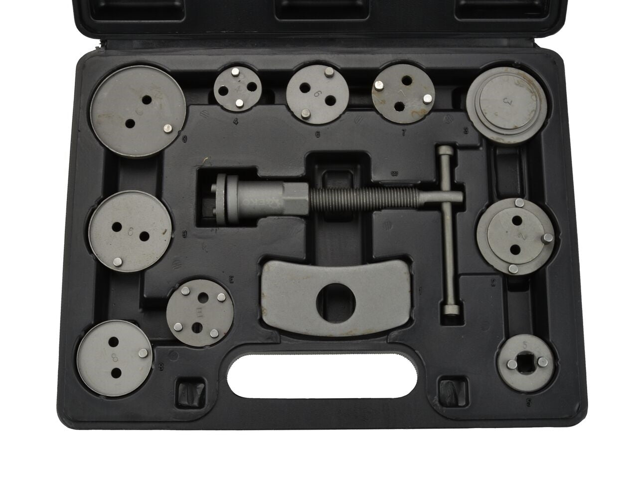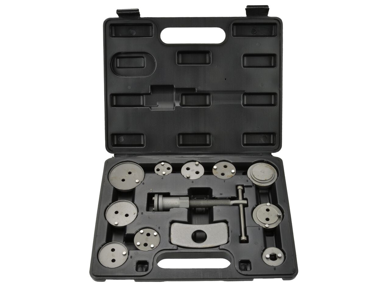 Set profesional de 12 piese pentru retragerea / stoarcerea pistoanelor de frana, necesar pentru repararea vehiculelor echipate cu frane cu disc.