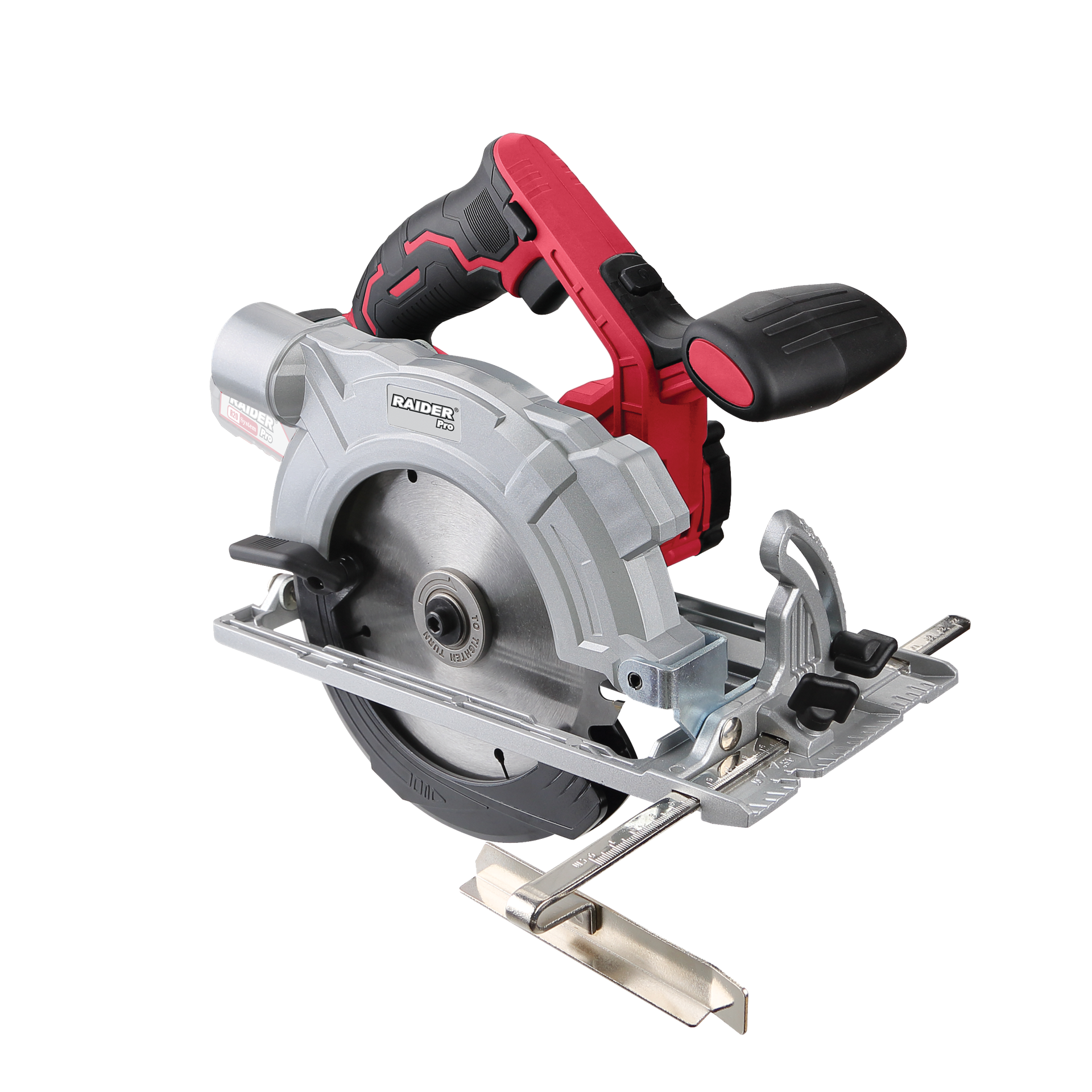 Fierăstrău circular fără fir RAIDER RDP-SCS20 Solo. Corpul motorului electric este fabricat din plastic de calitate, iar baza și siguranța discului sunt din aluminiu. Fierăstrăul are o „vedere” laser - un fascicul laser bine focalizat care conturează la o distanță de aproximativ un metru înainte, linia de-a lungul căreia va tăia discul înainte de a atinge materialul. Un buton este prevăzut pentru a bloca arborele la înlocuirea discului. Baza mașinii poate fi înclinată pentru tăiere la o înclinare laterală de până la 45 °. Motorul electric este alimentat de o baterie Li-Ion universal de 20V și dezvoltă 4200 rpm. / min. Ieșirea prafului permite ferăstrăului să fie conectat la un aspirator sau la alt sistem de colectare a prafului. Fierăstrăul are un ghid pentru tăiere paralel cu placa de bordură sau cu placa. Mașina face parte din seria R20 de produse RAIDER, utilizând trei baterii universale cu capacități diferite.
