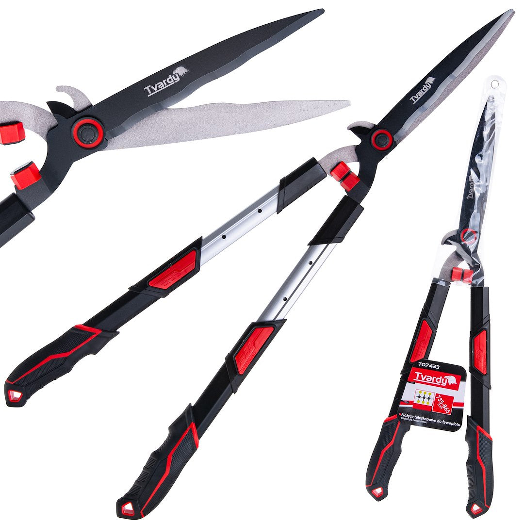 Aceste masini de tuns gard viu telescopice cu o lama ondulata din PTFE de 735-865 mm functioneaza confortabil, precis si fara a rupe plantele.